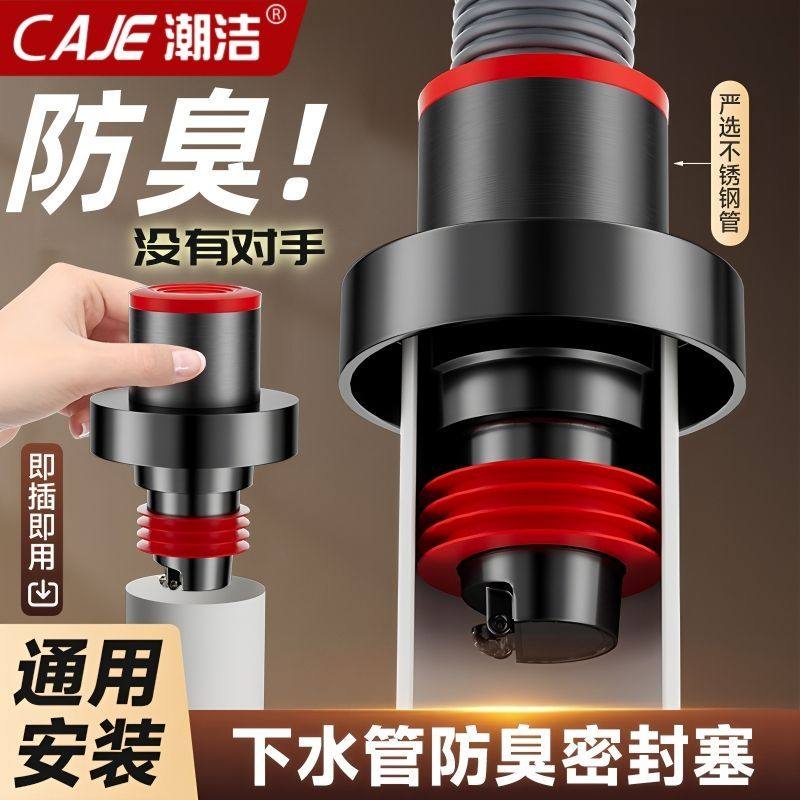 潮洁洗衣机下水止逆阀防反水接头防臭防溢神器下水道排水管密封塞