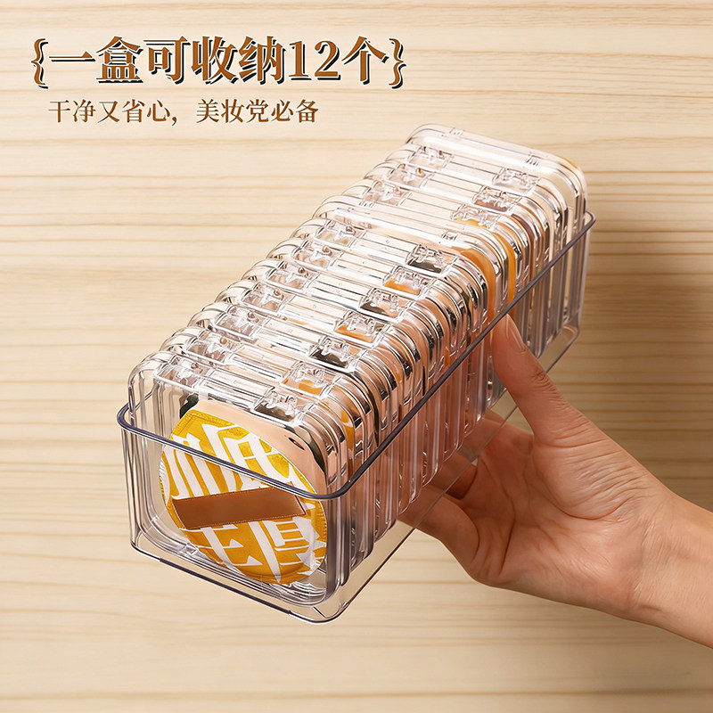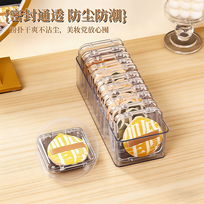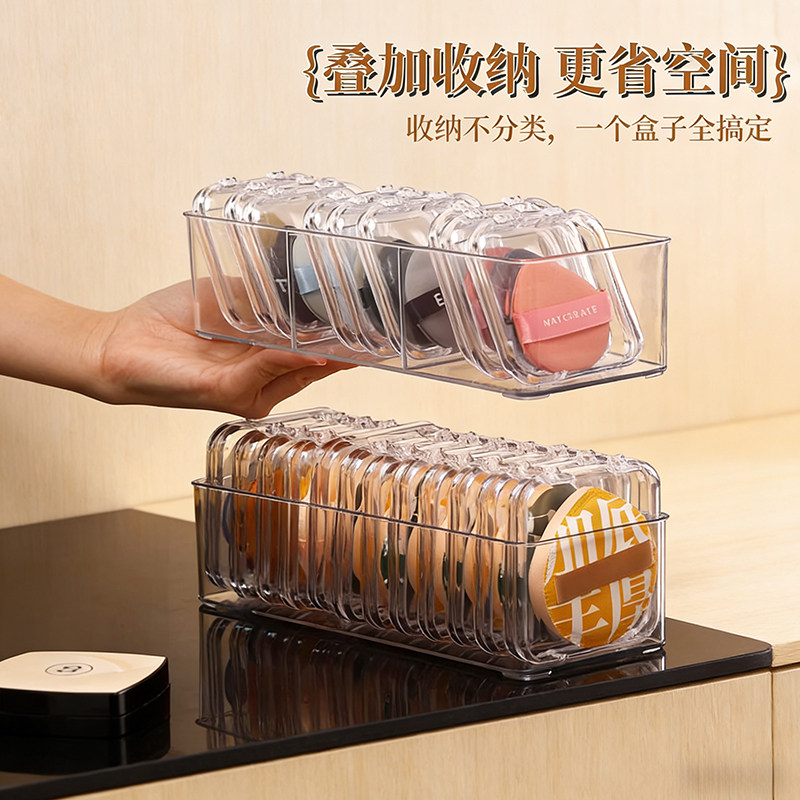 桌面透明粉扑美妆蛋收纳盒可叠加分格整理盒节省空间化妆品收纳架