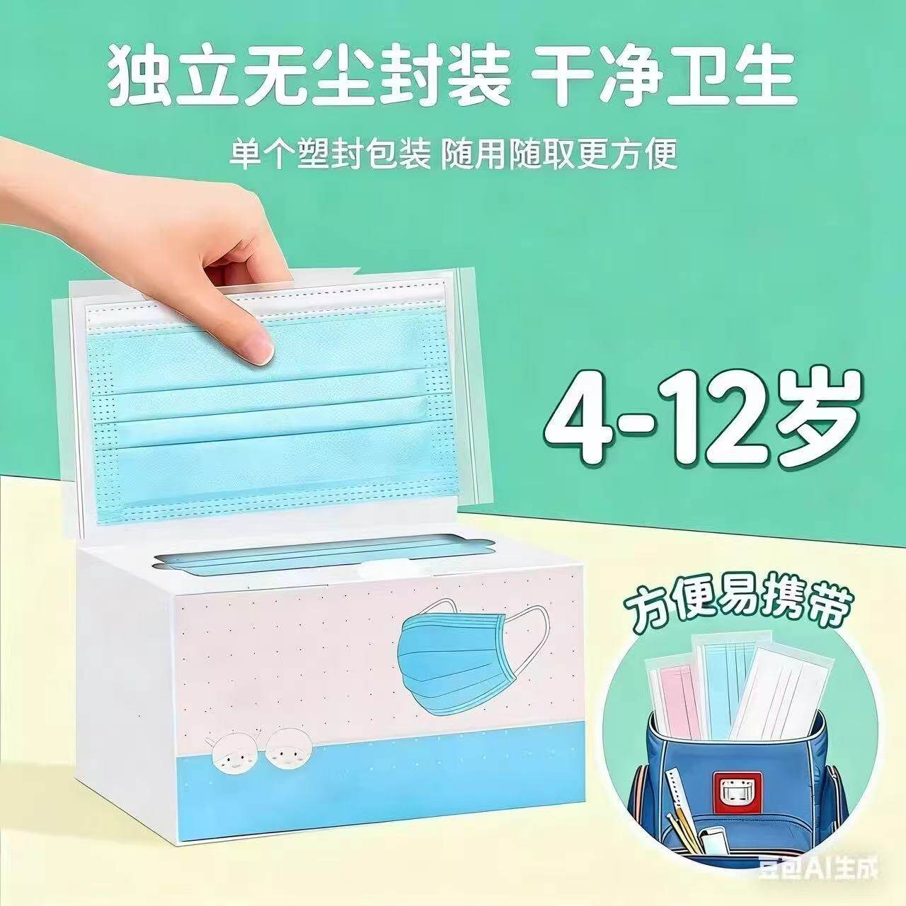 QA儿童口罩一次性三层防护独立包装蓝色防潮透气