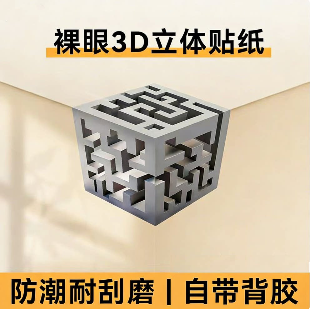 墙角裸眼3d立体墙贴四维自粘贴纸魔方室内装修墙壁画软装墙贴