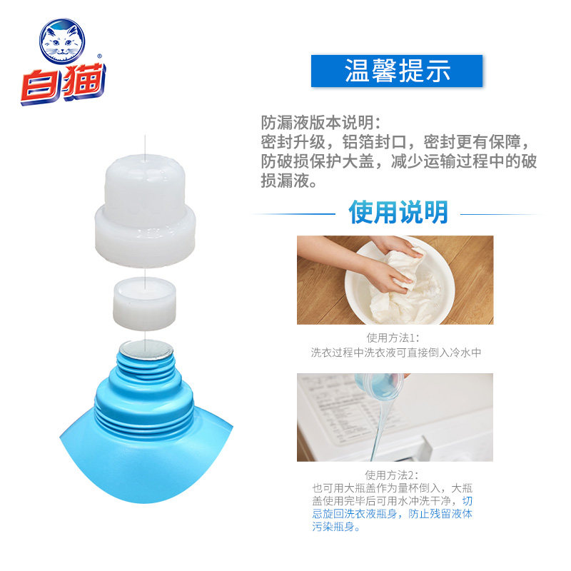 白猫高效洁净洗衣液2.3kg多规格快速漂洗手洗机洗除菌洁净易溶解