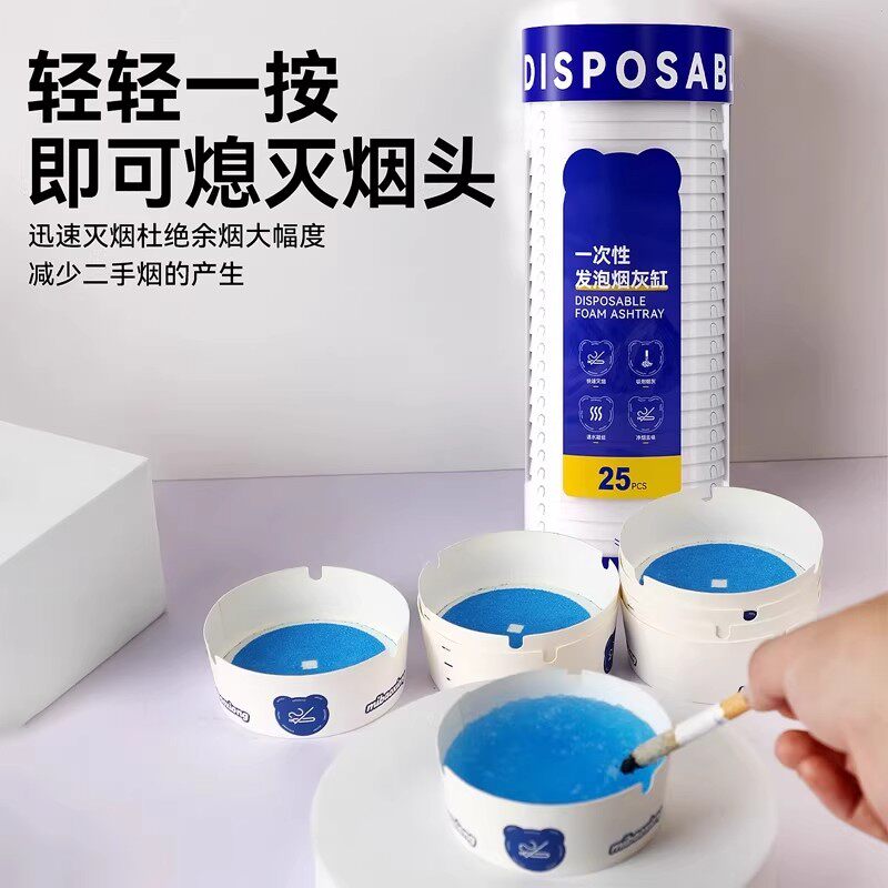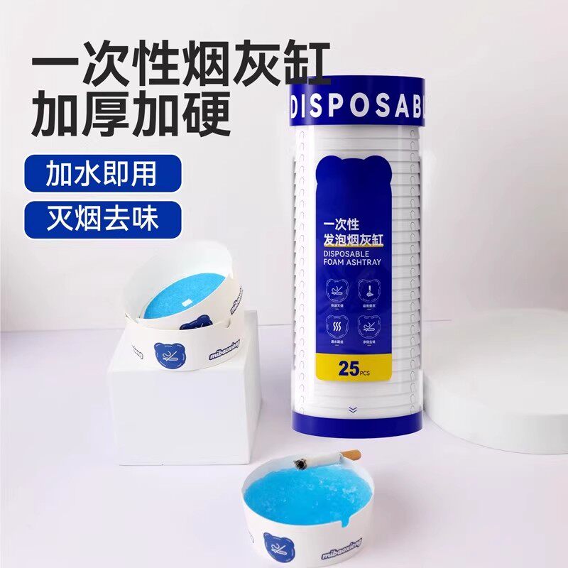 一次性烟灰缸自带灭烟沙泥清洁剂办公室吸附防飞灰便携家用烟灰缸