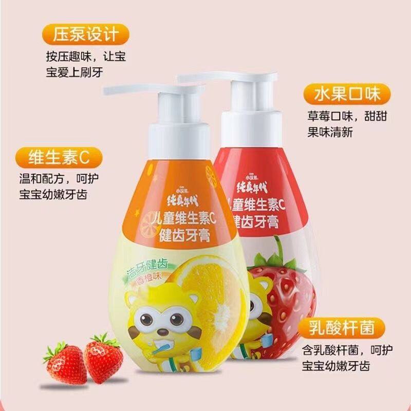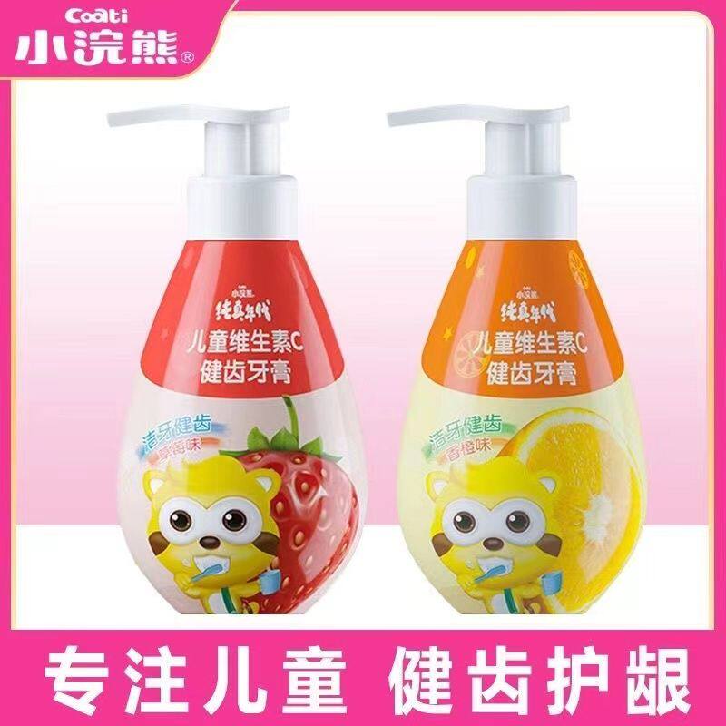 小浣熊儿童防蛀牙膏按压式3-6-12岁宝宝学生洁牙健齿牙膏果味