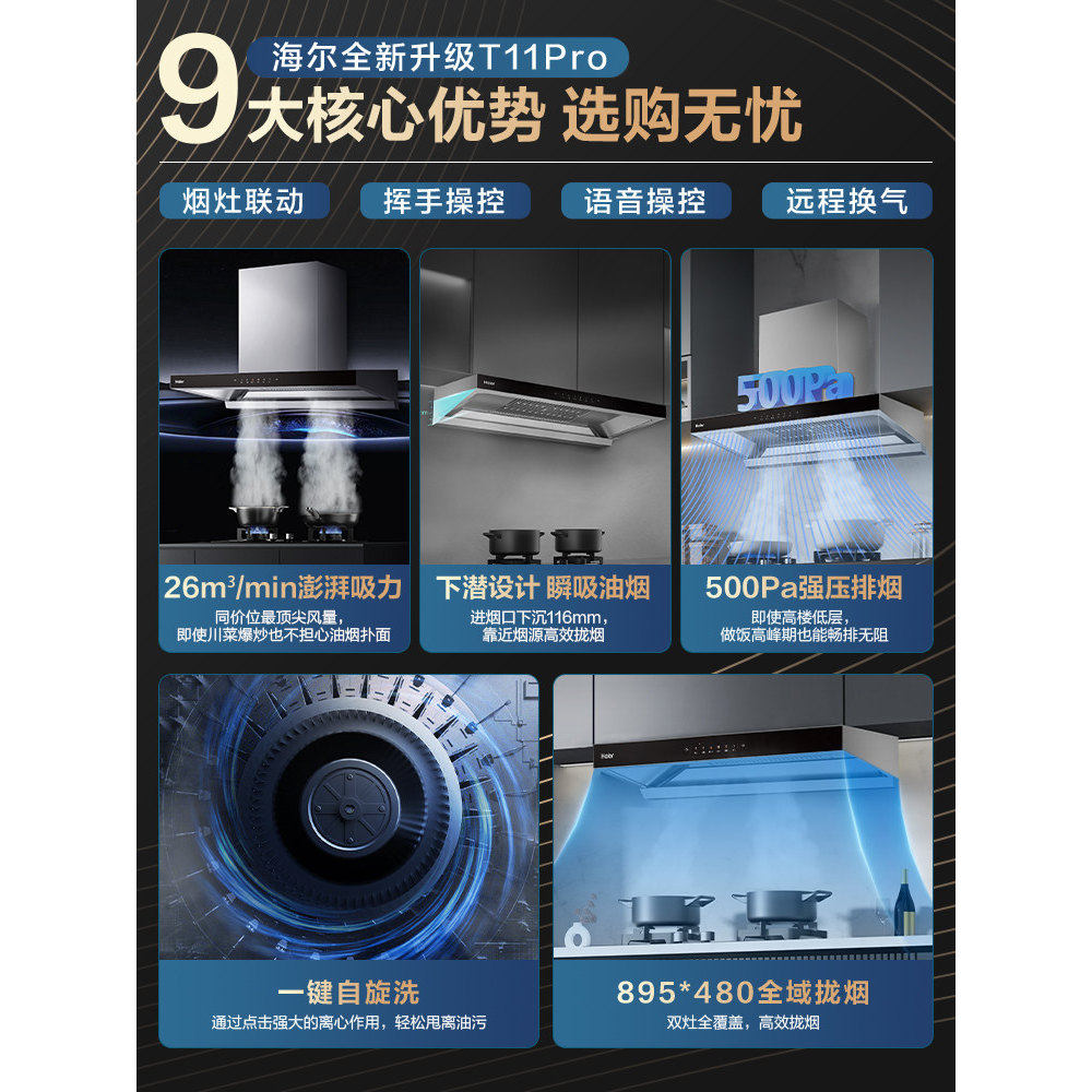 海尔抽油烟机T11Pro吸油机大吸力油烟机燃气灶家用厨房顶吸欧式