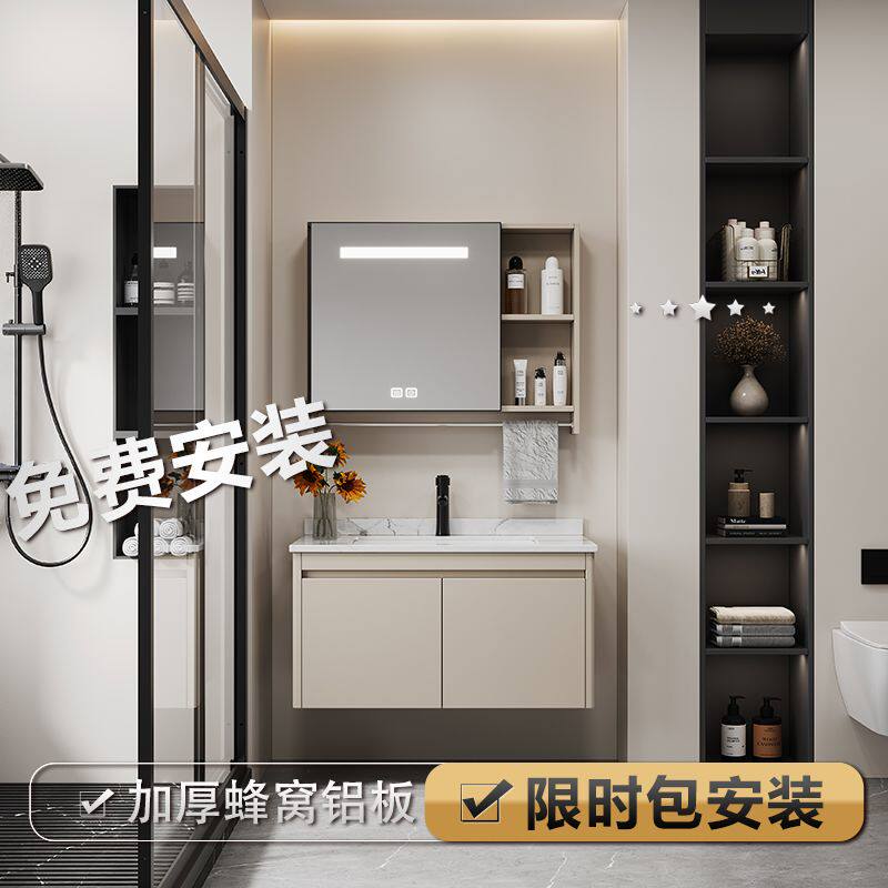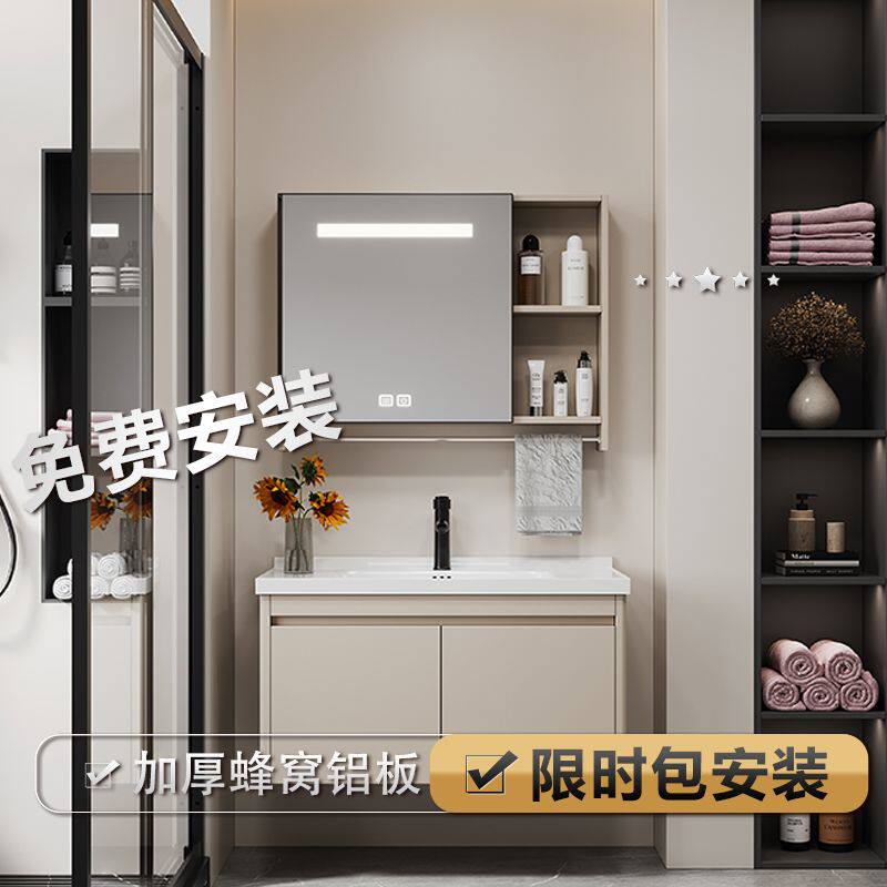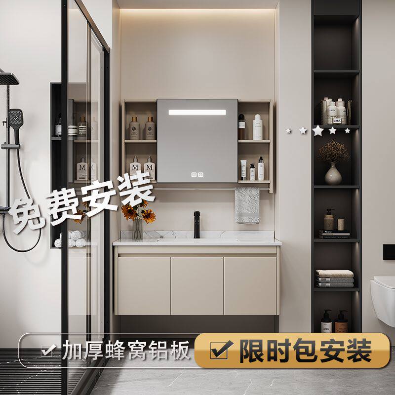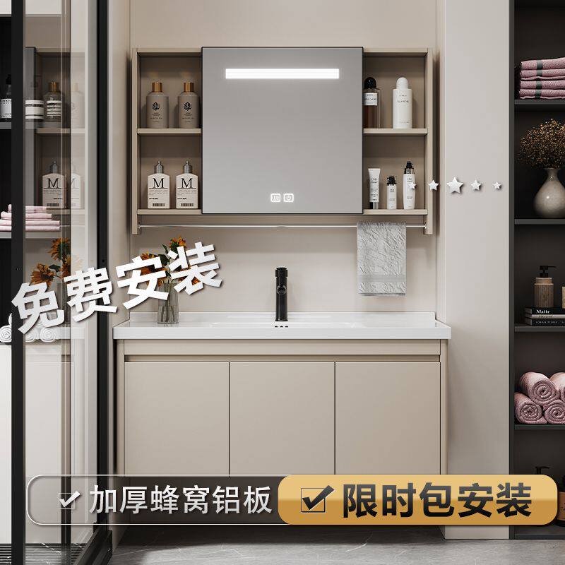 莫顿正品包安装卫生间小户型太空蜂窝铝浴室柜陶瓷一体洗手洗脸盆