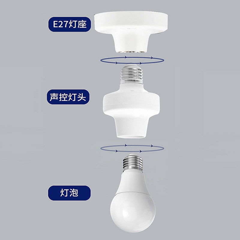 声控开关E27螺口家用家居智能楼道节能明装走廊光控感应灯座灯头