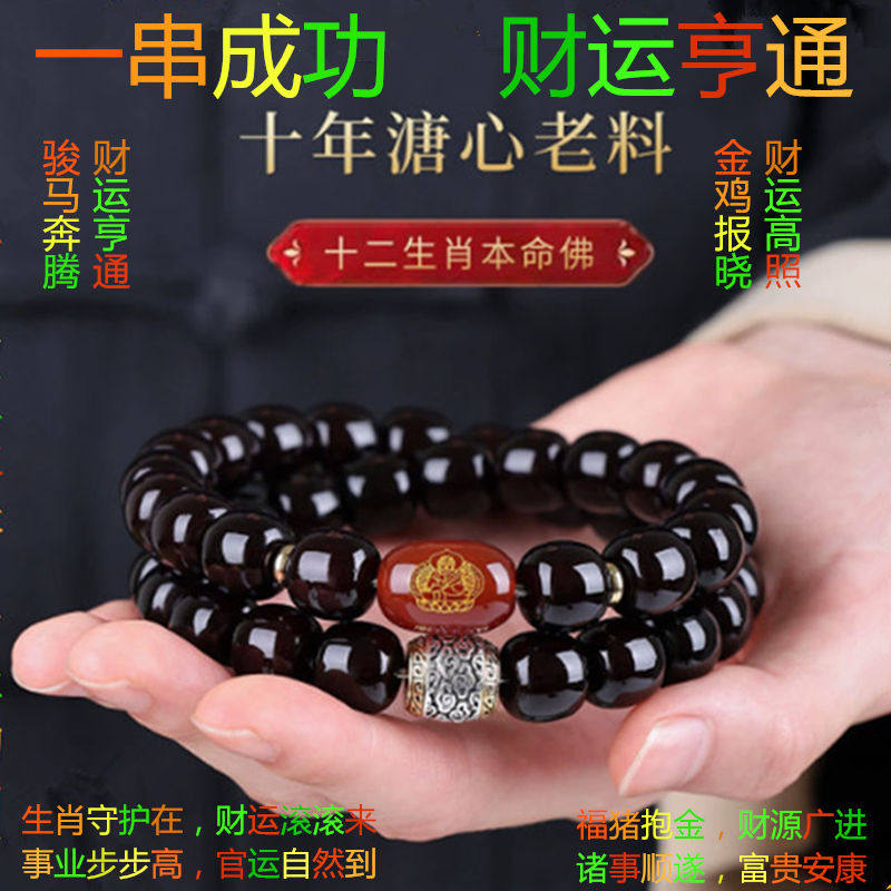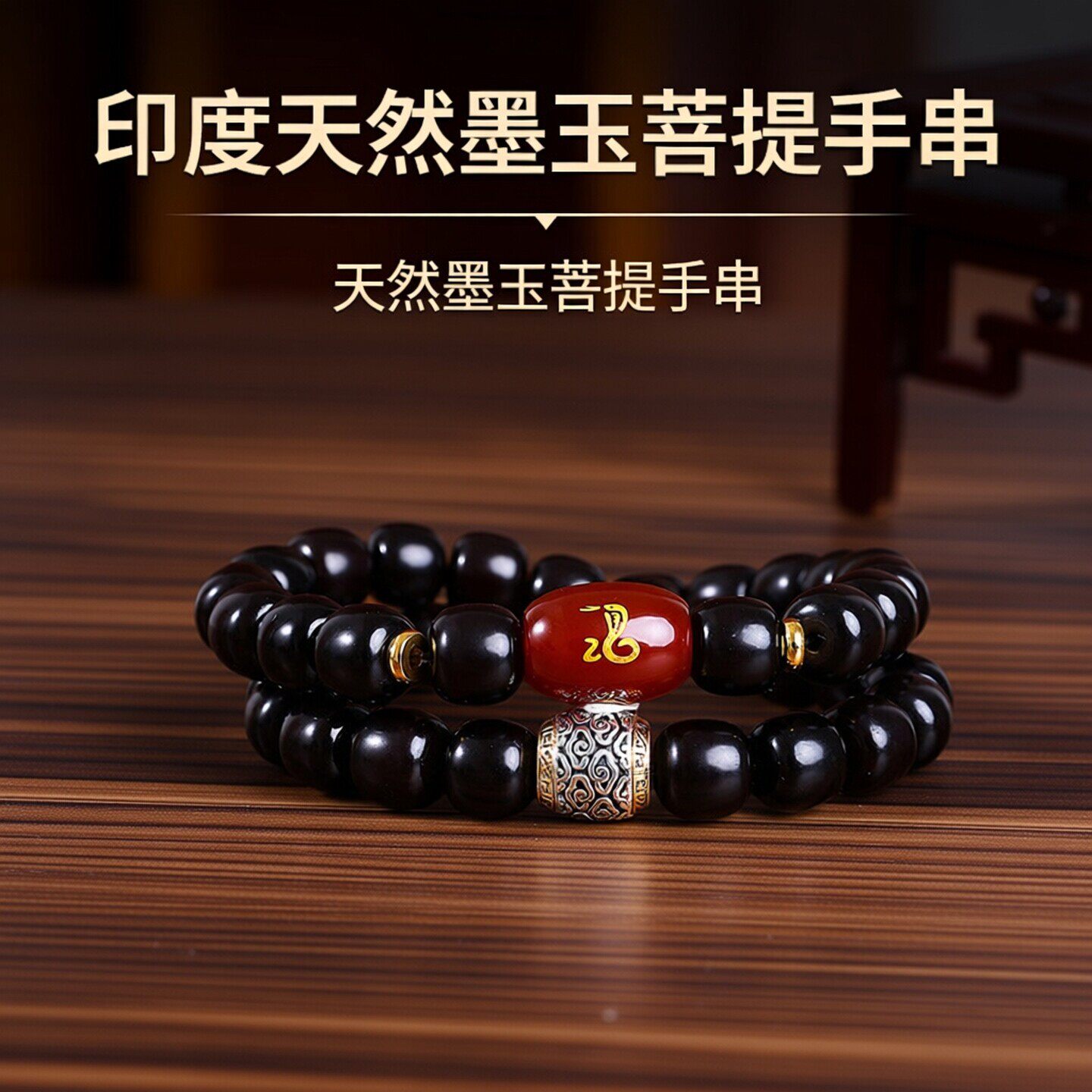 正宗真品天然珍玩菩提手钏双圈墨玉生肖糖心老料手串男女同款本命