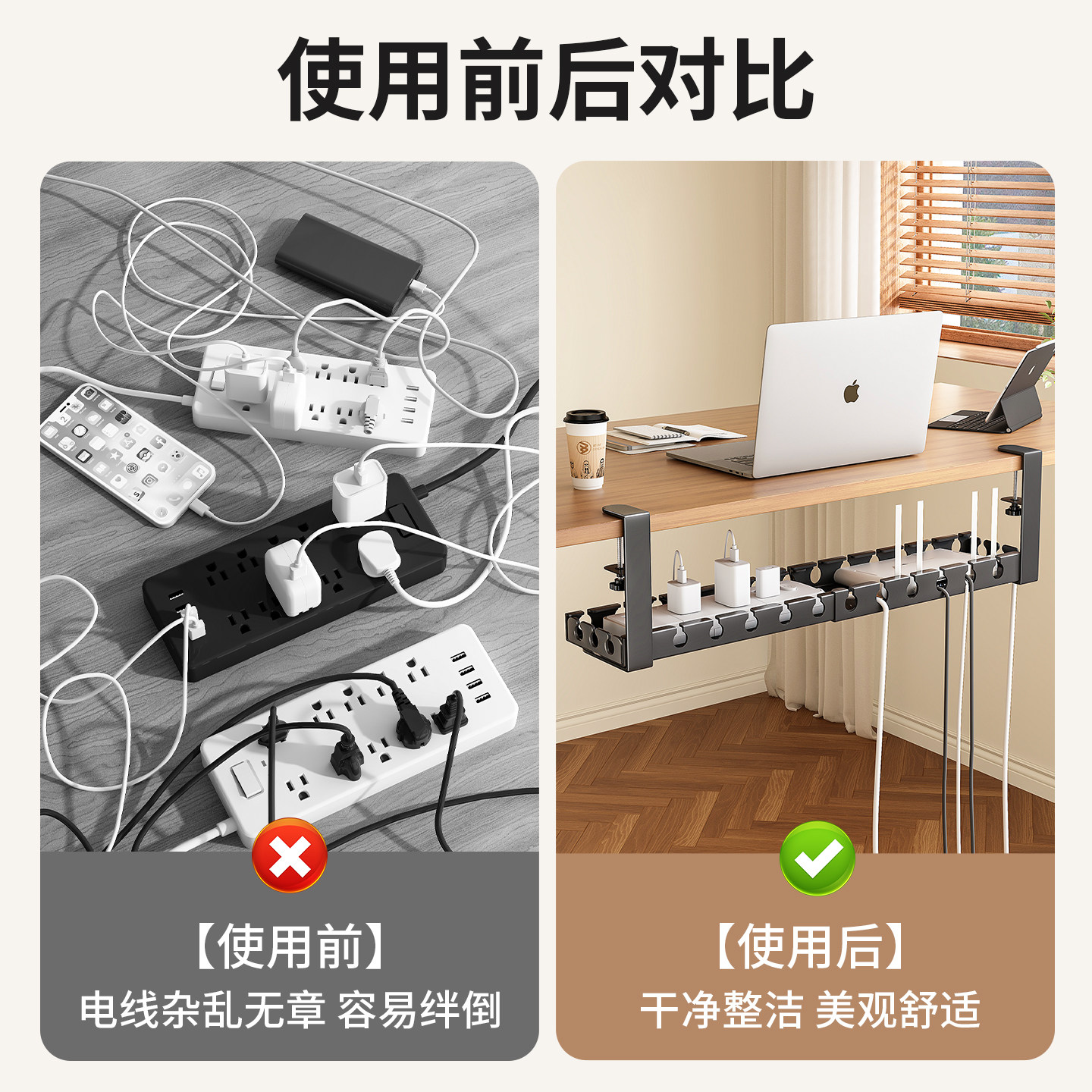 桌下理线器免打孔排插固定器电源线架槽线路整理盒路由器收纳架子