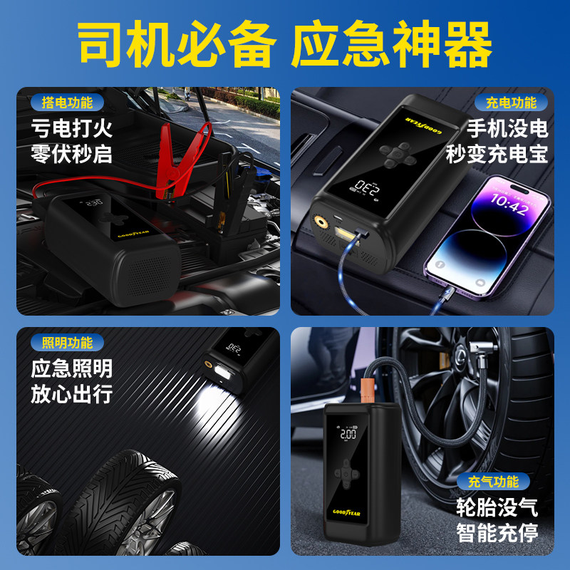 固特异S2搭电宝汽车应急启动电源充气泵一体机强启动电瓶打火神器