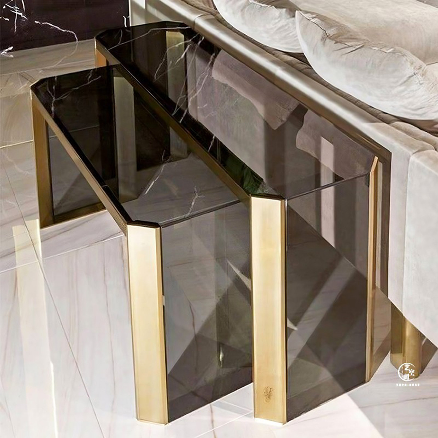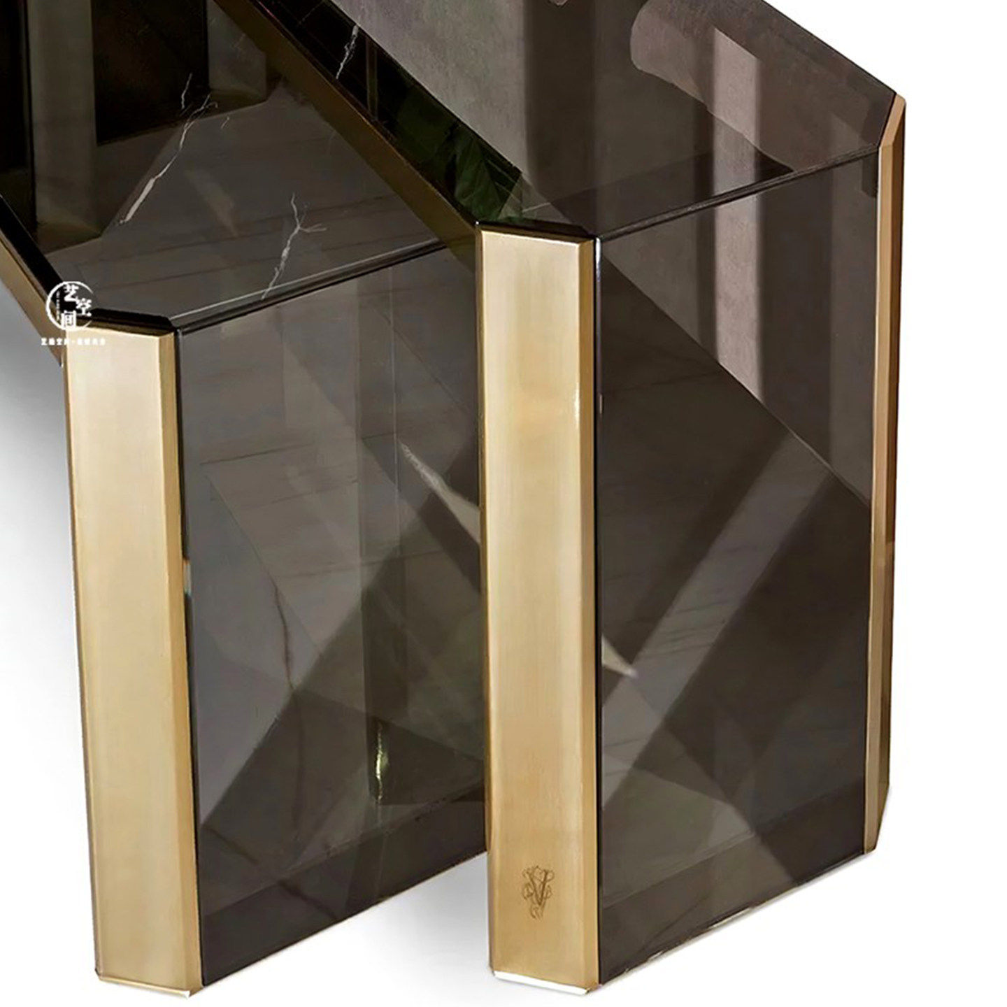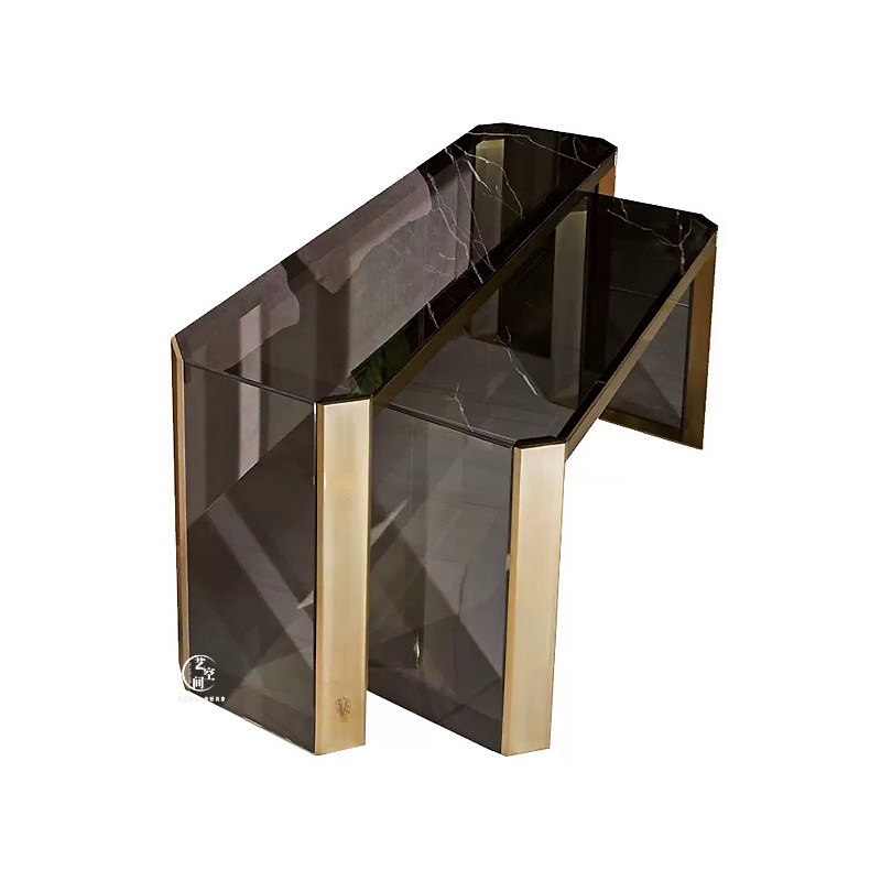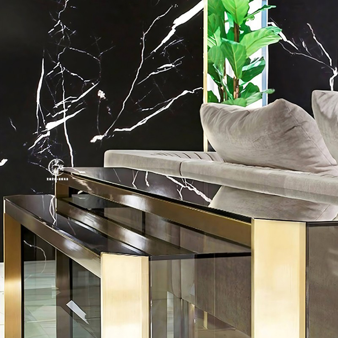 意大利轻奢玄关台设计师后现代高档客厅入户大理石条案沙发背几