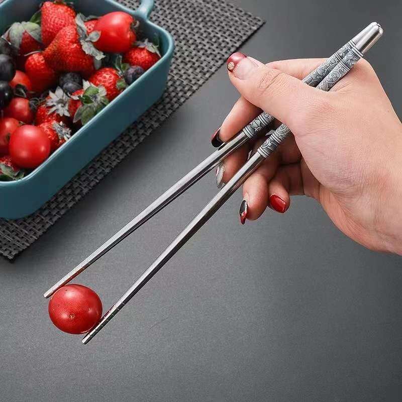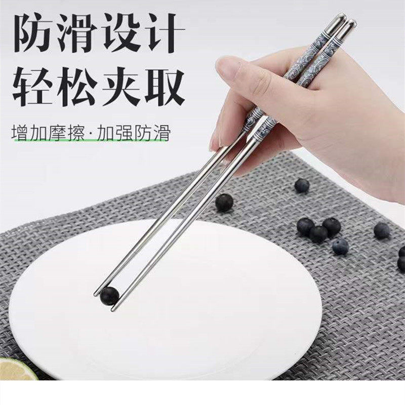 厨房青花瓷筷子高档筷子不锈钢筷子家用筷防滑防烫防霉筷一体圆筷