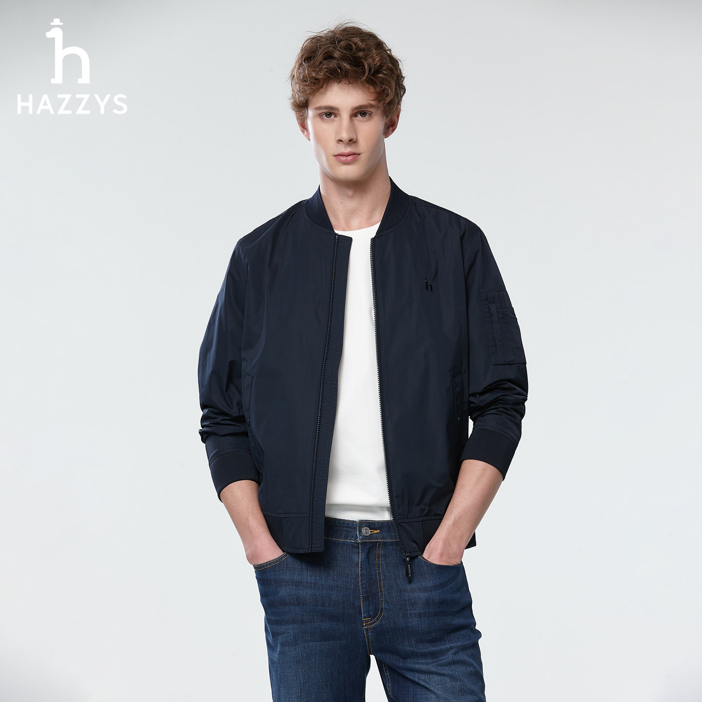 【春夏甄选】Hazzys哈吉斯春款潮流净色男装夹克外套休闲简约上衣