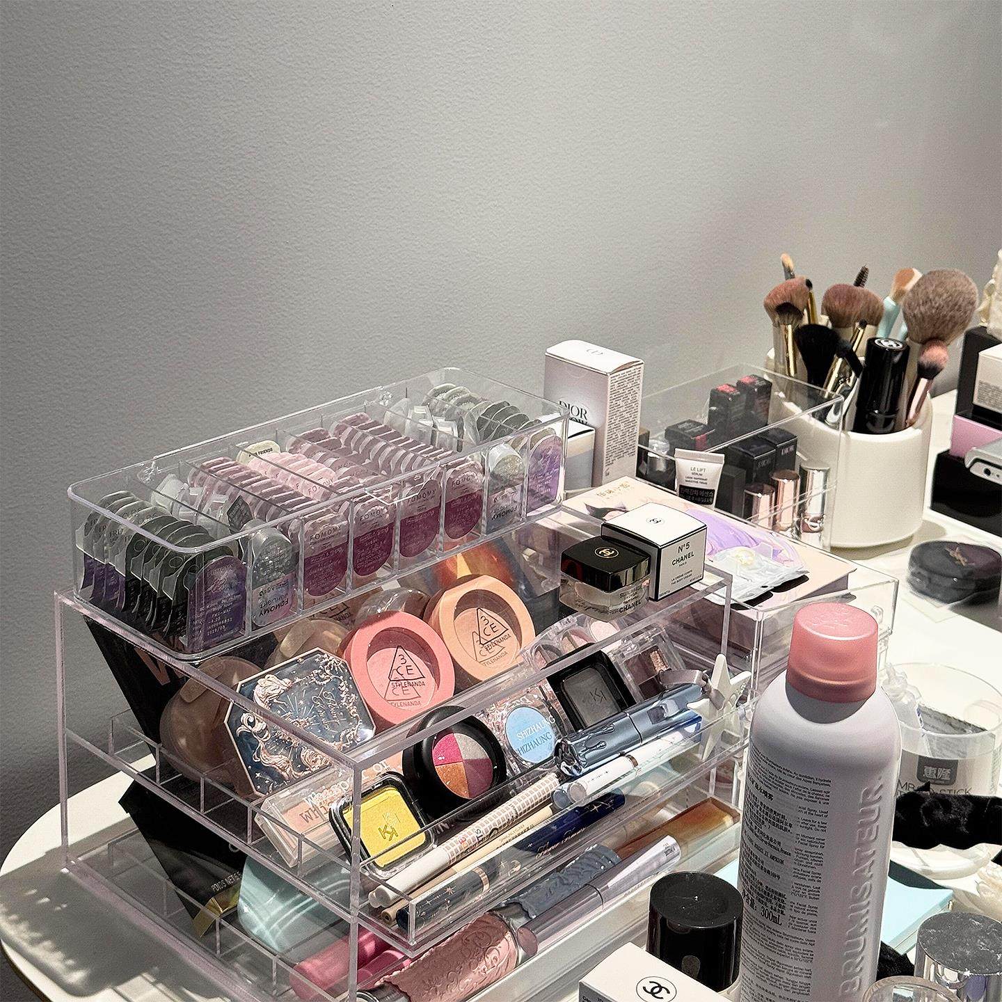 桌面防尘美瞳收纳盒大容量日抛多格隐形眼镜整理盒家用透明多副装