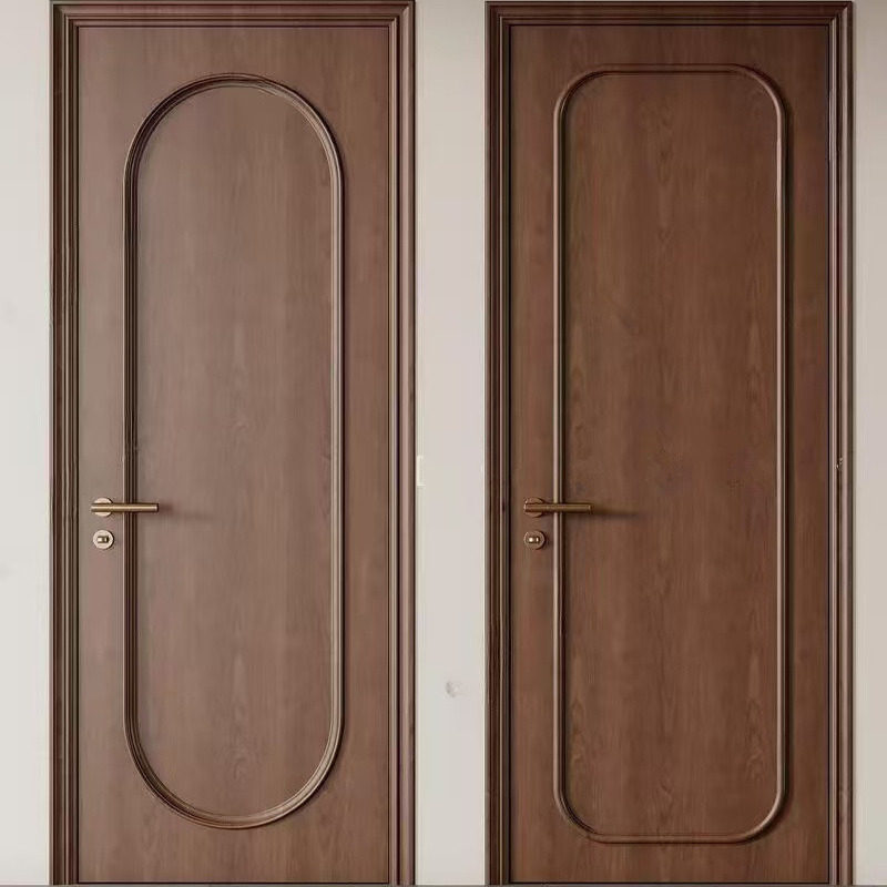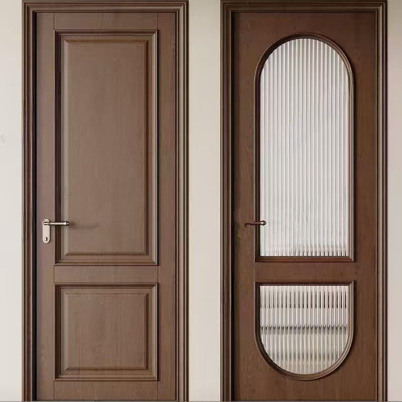 中古风卧室门复古胡桃木色房间门实木门烤漆室内门厨房门木门定制