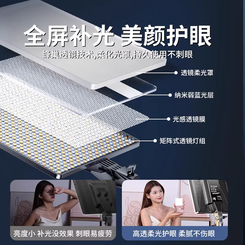 补光灯直播专用摄影平板灯主播led直播间主播专用室内摄影棚拍摄打光拍照美食灯柔光拍视频珠宝带货棚面方形