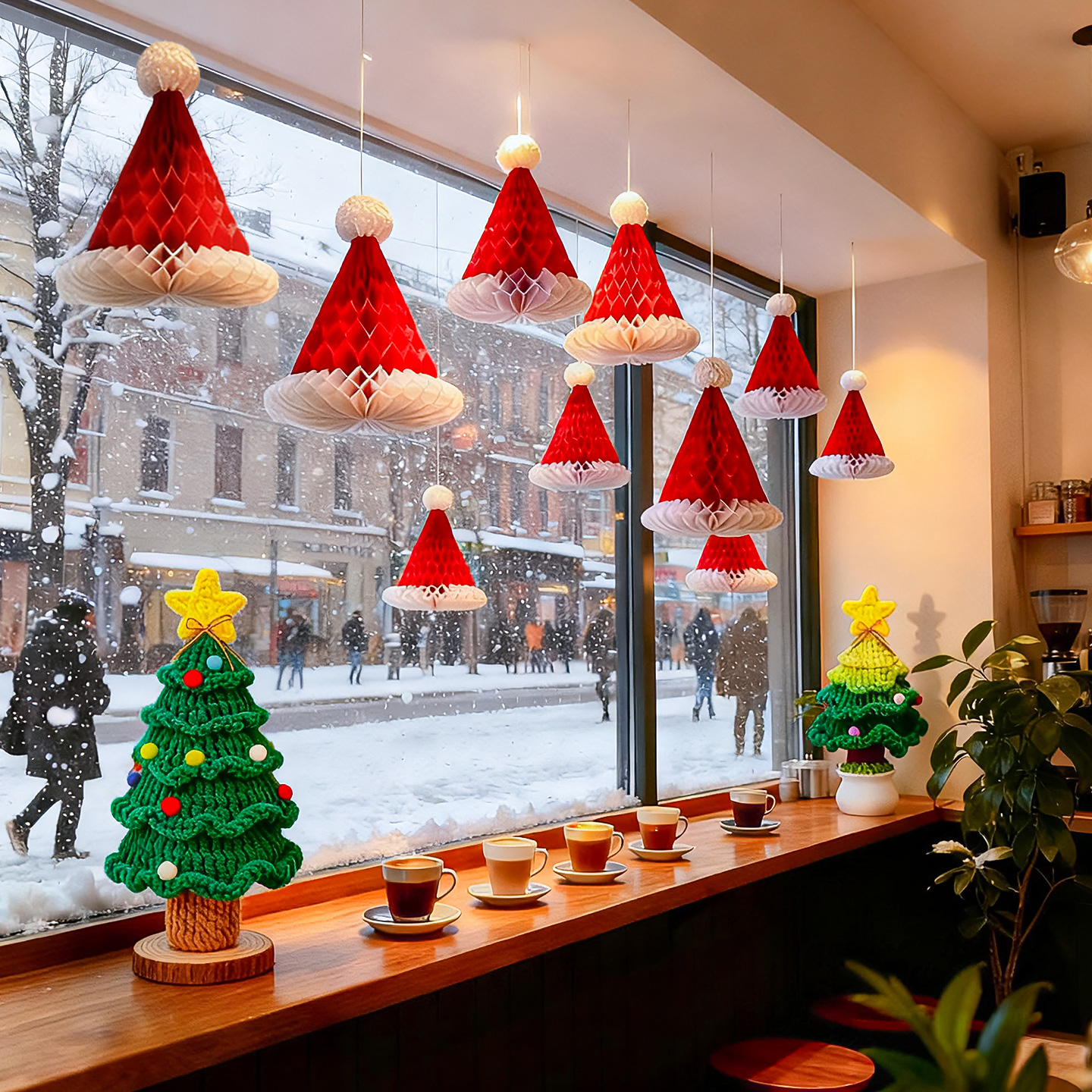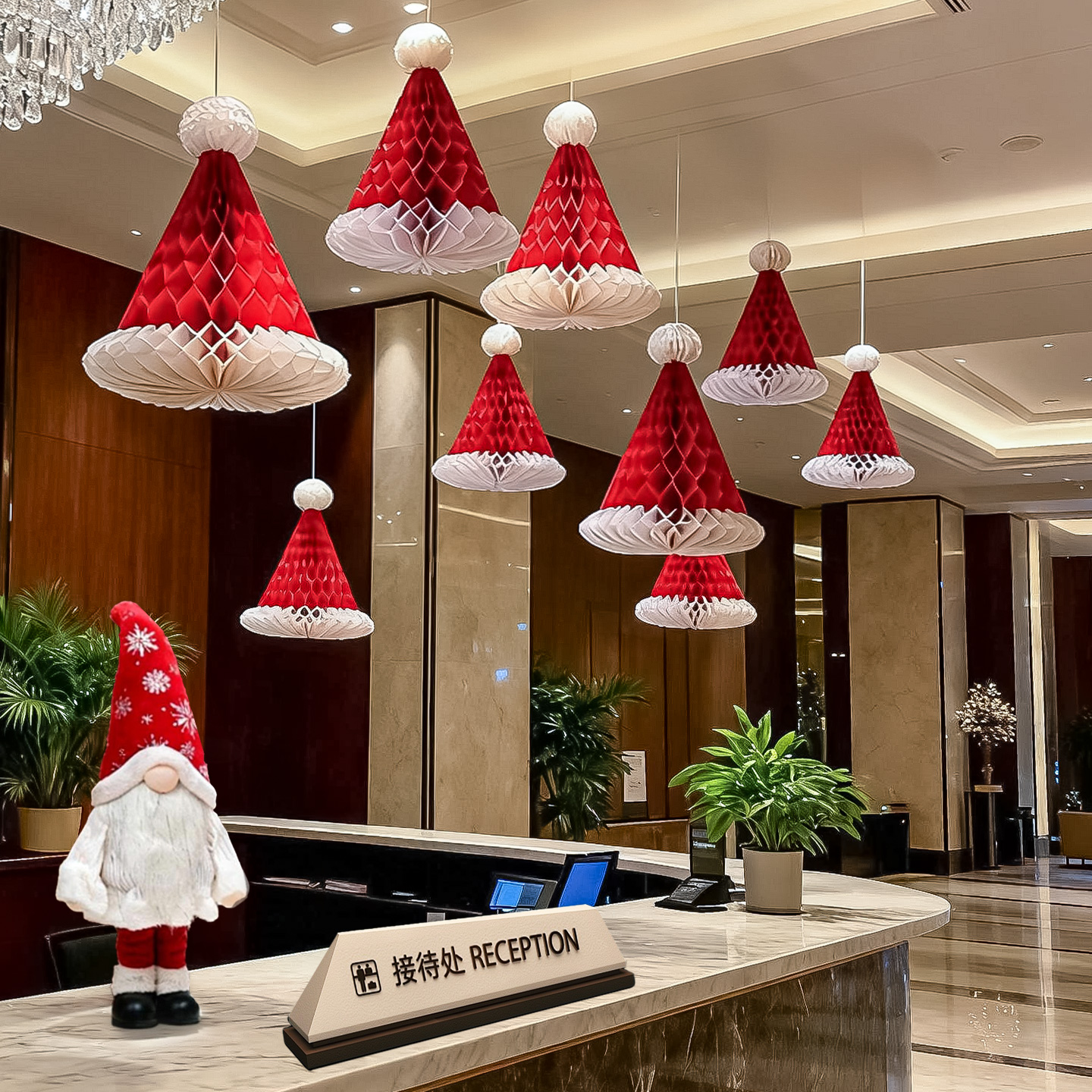 圣诞节商场店面酒吧圣诞帽树挂饰场景氛围布置餐厅室内吊饰装饰品