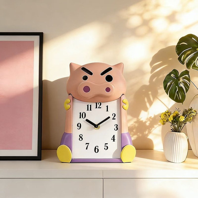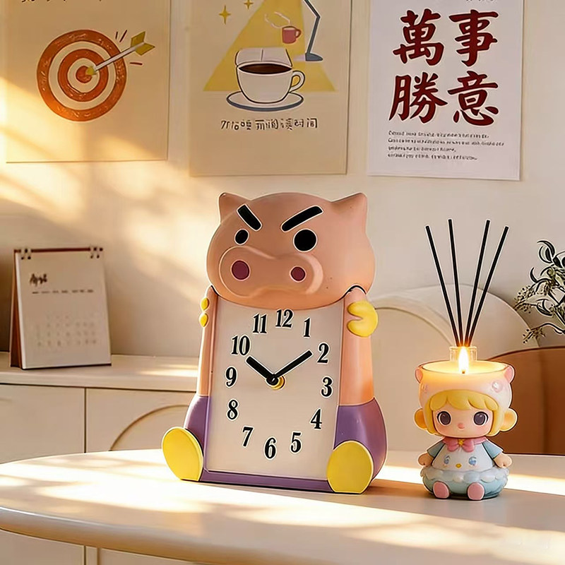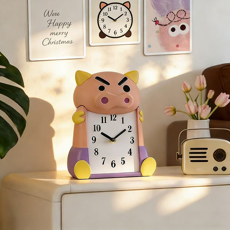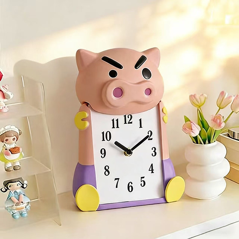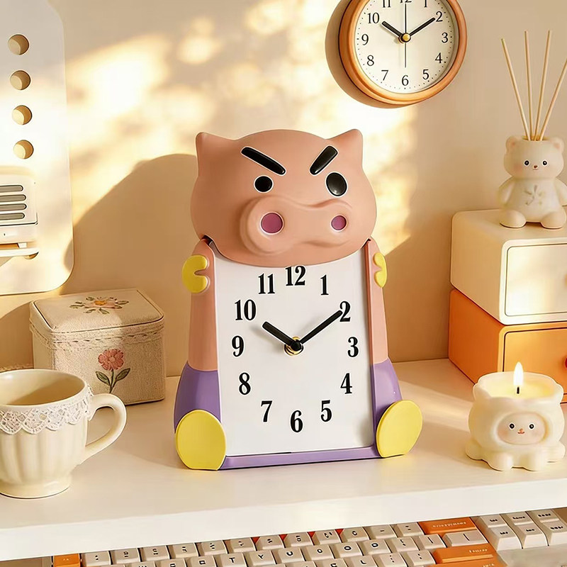 2026年可爱卡通猪头台钟创意时钟桌面摆件轻便小闹钟桌面装饰品