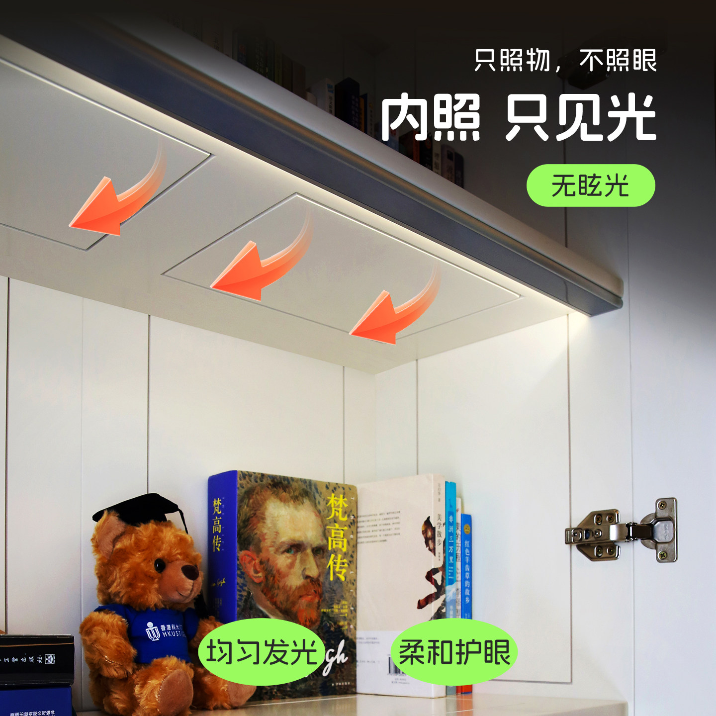 感应灯条led磁吸充电橱柜灯开门亮衣柜酒柜鞋柜展示柜灯带免插电