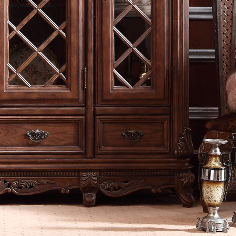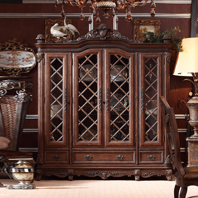 欧式纯实木四门玻璃酒柜靠墙装饰柜展览柜家用做旧饰品柜珠宝柜子