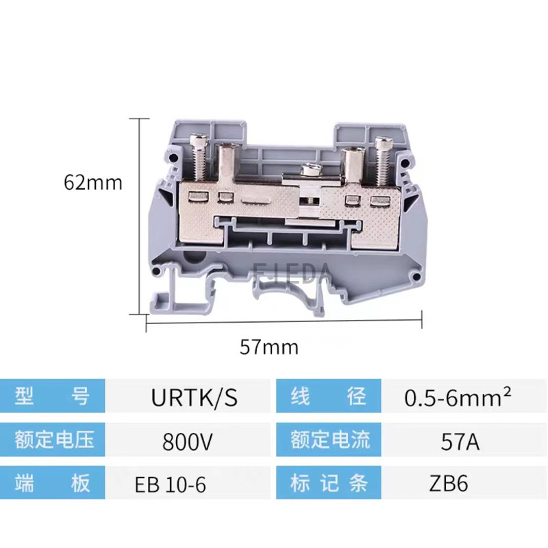 URTK/S电流配电柜导轨式接线端子排UK6S分断测试实验纯铜阻燃端子