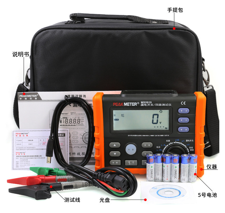 华谊MS5910漏电开关测试仪漏电保护器电工检修环路回路电阻检测仪