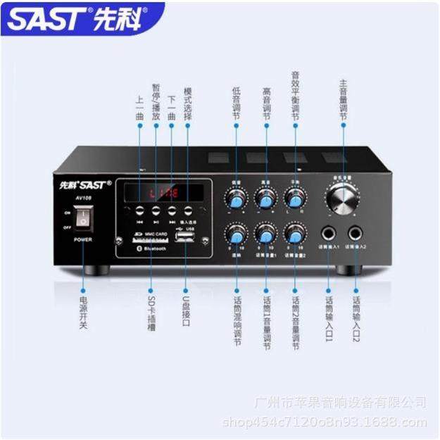 先科AV-108家用功放机2.1影院KTV卡包音响蓝牙功放金属机身带功放