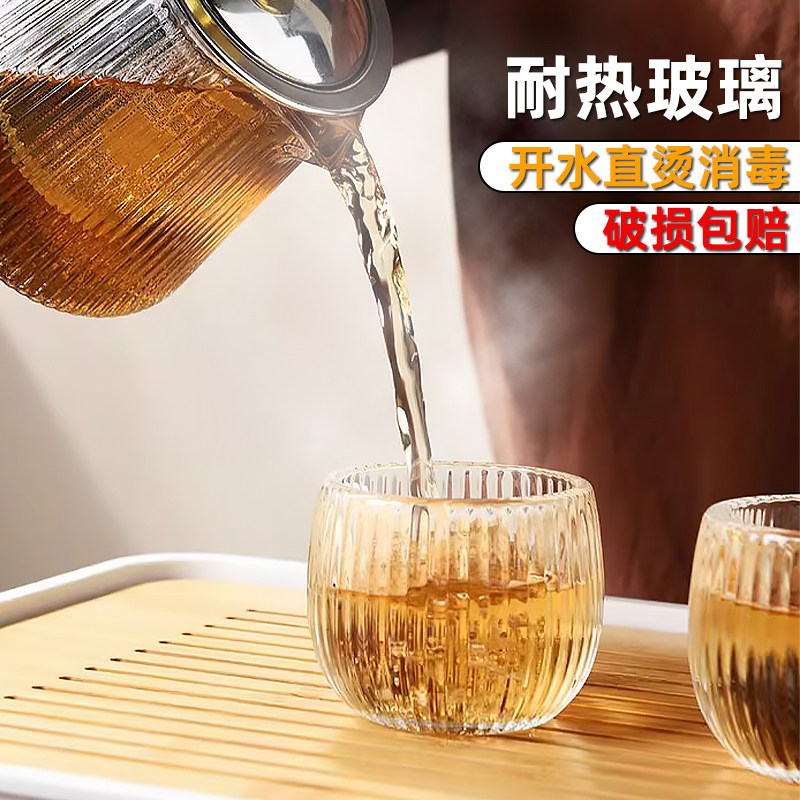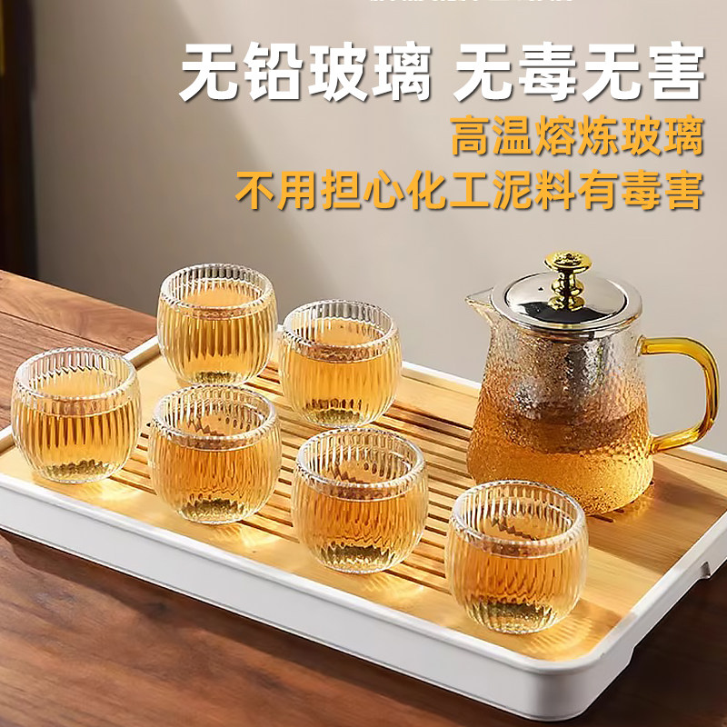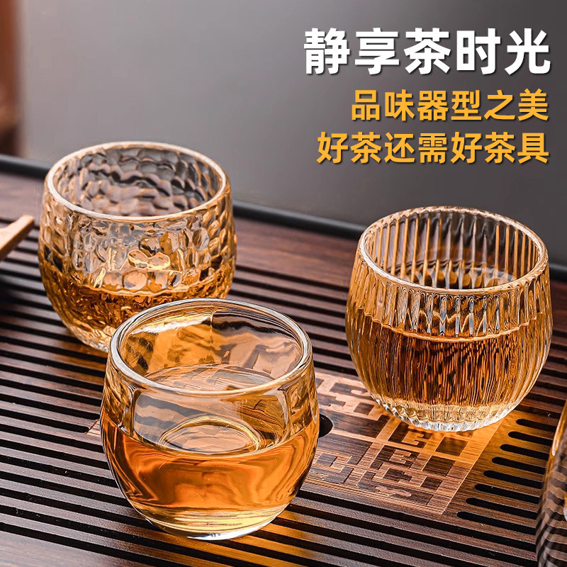 日式锤纹耐热加厚玻璃杯功夫茶具茶杯不烫手玻璃品茗杯主人杯套装