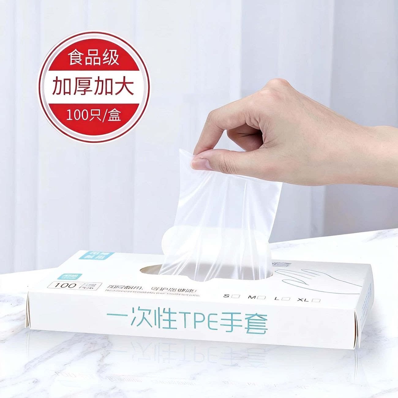 一次性TPE手套食品级加厚耐用透明厨房餐饮专用防油防护手套
