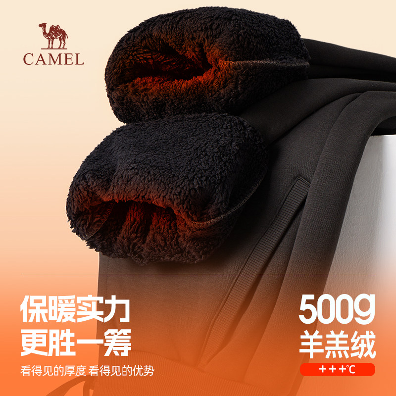 骆驼男装2025冬季羊羔绒运动裤男加绒加厚东北保暖针织卫裤男