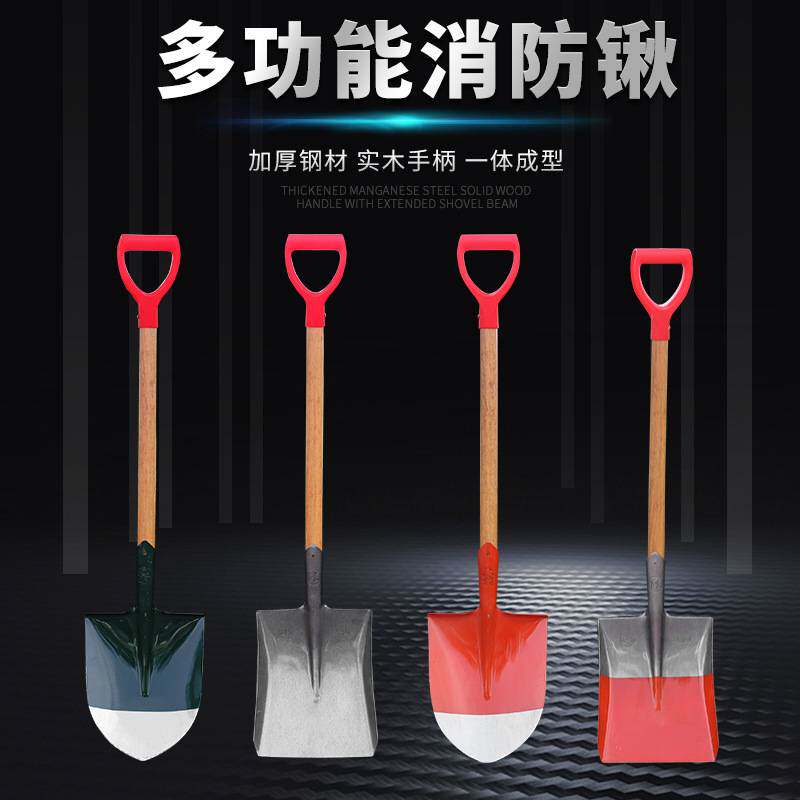 消防铁锹铲灭火演习专用工具消防器材方锹尖头铁锹应急救援钢铲子