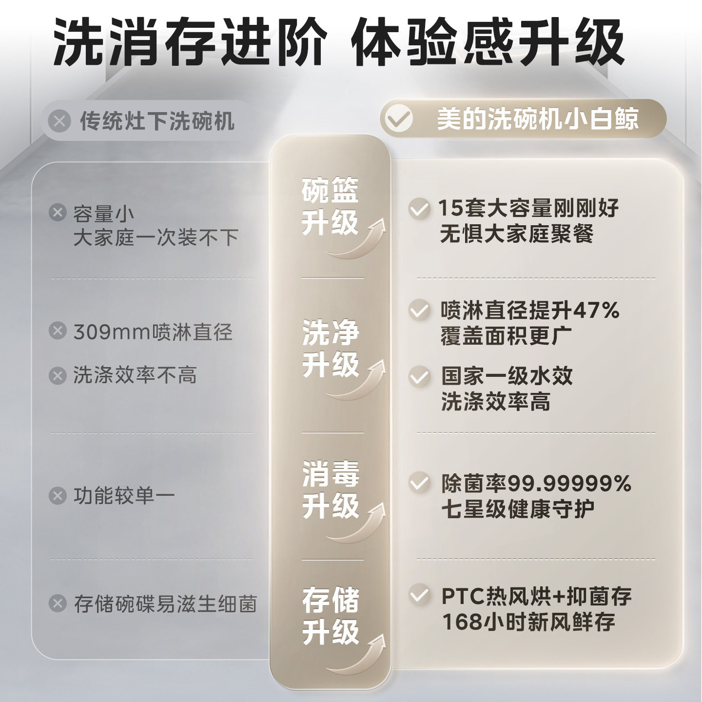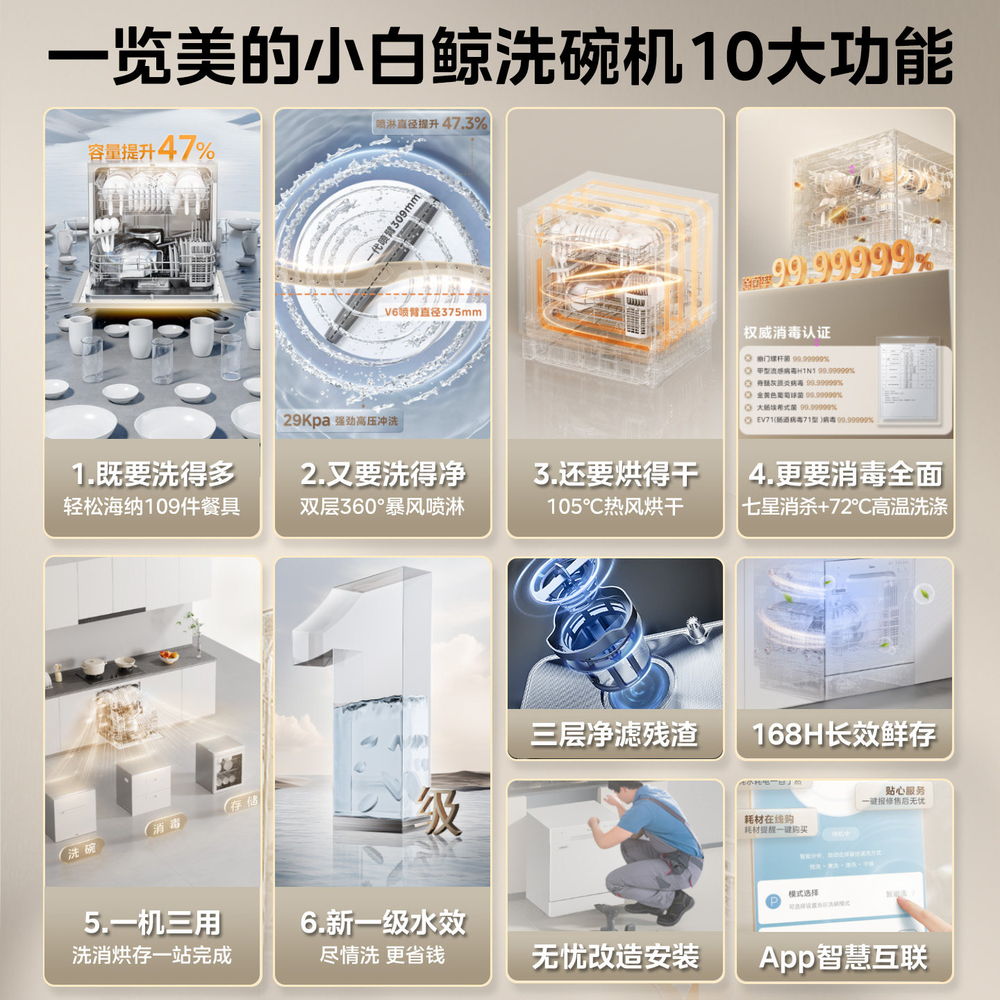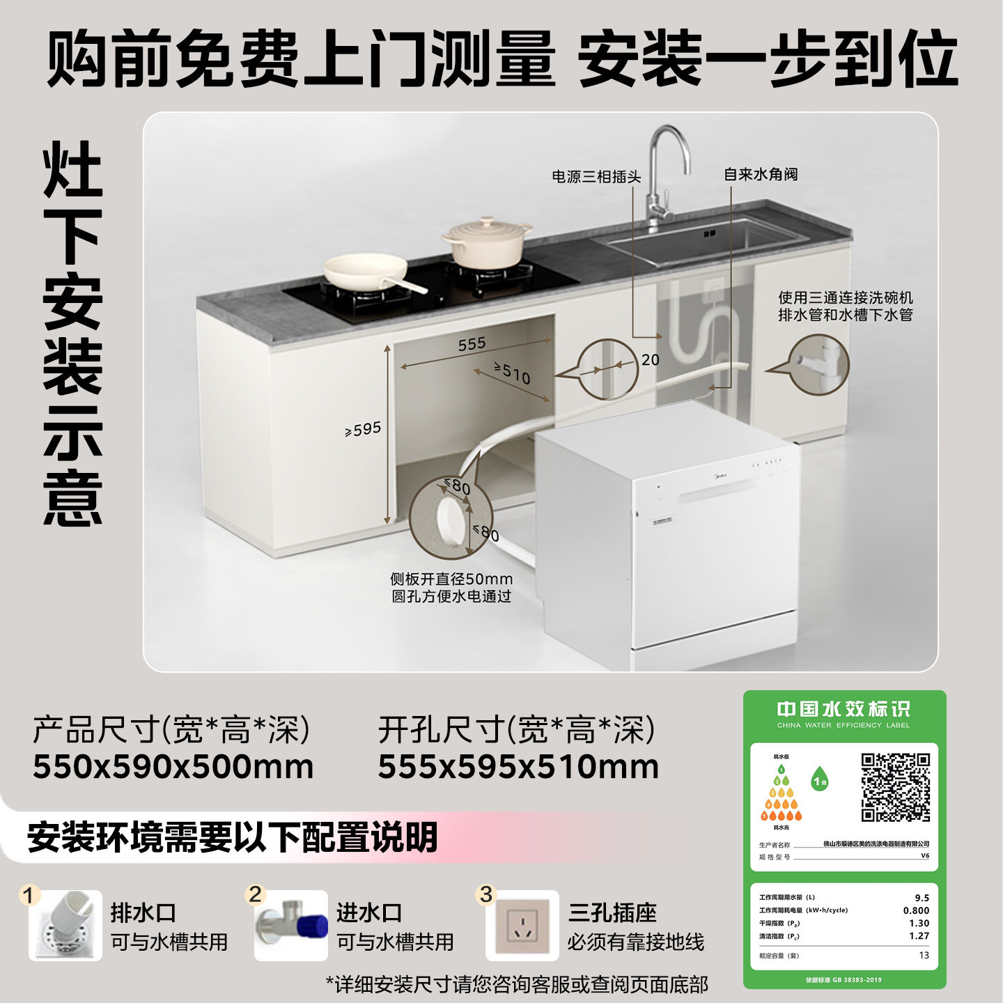 美的台式洗碗机灶下可安装家用15套全自动消毒烘干一体机小白鲸V6