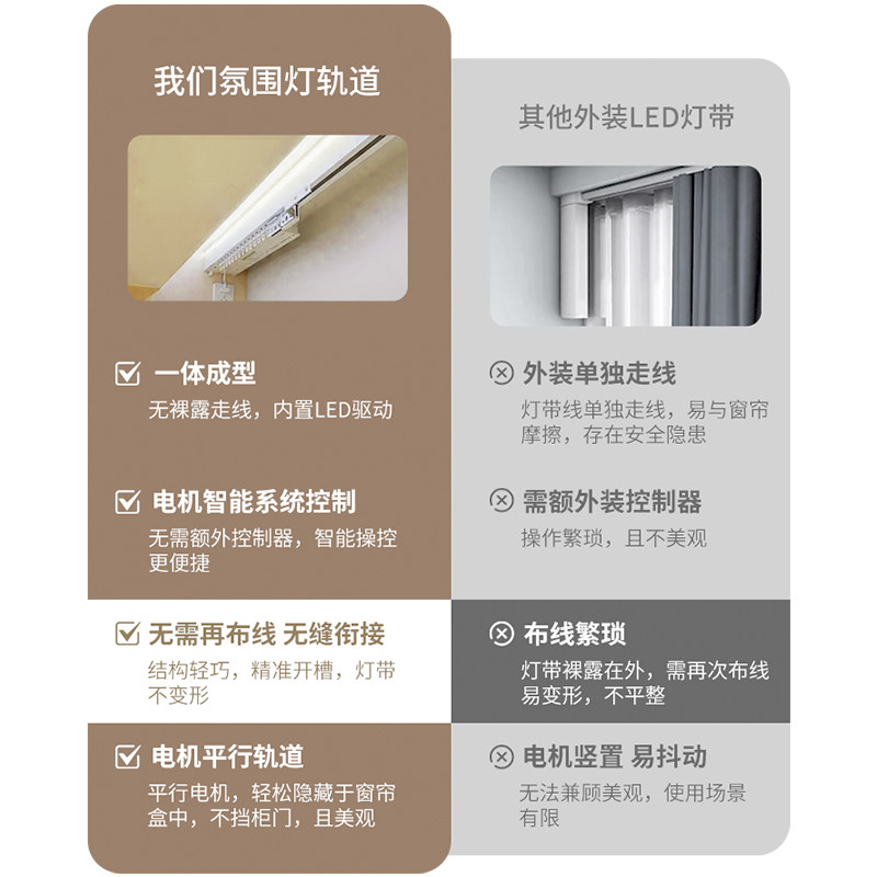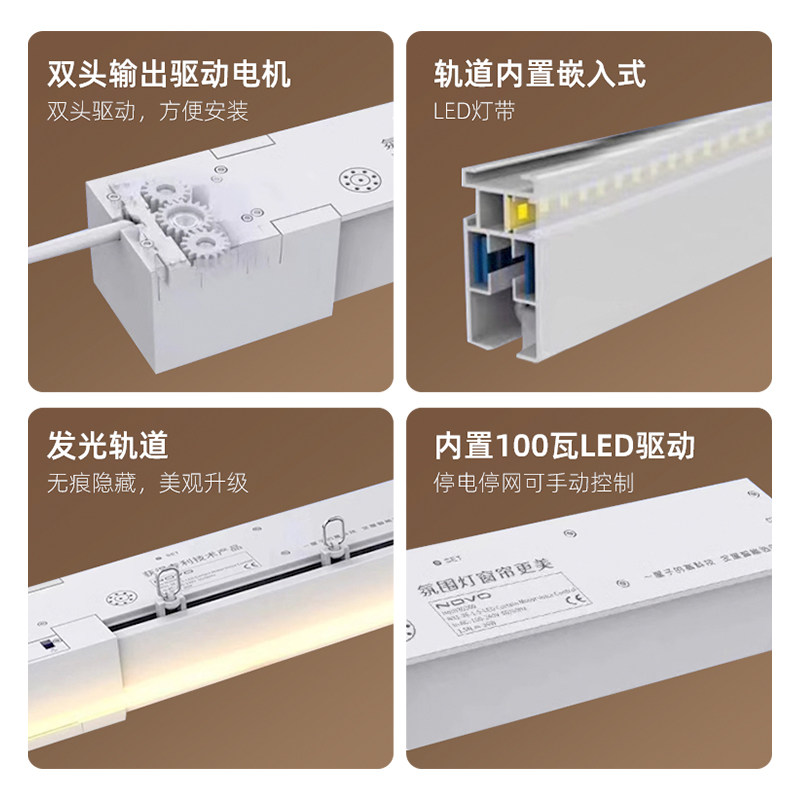 氛围灯隐藏式电动窗帘轨道智能自动发光灯带一体式电机语音声控
