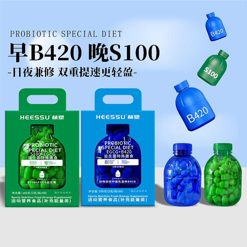 HEESSU益生菌EGCG+B420/S100膳食90瓶/桶其他膳食营养补充剂正品