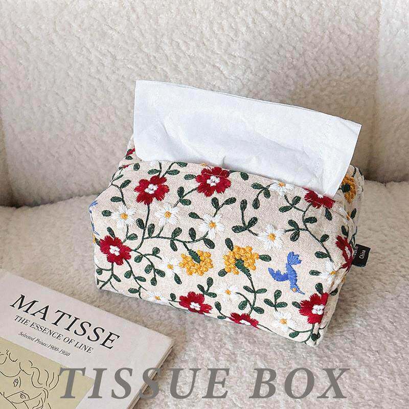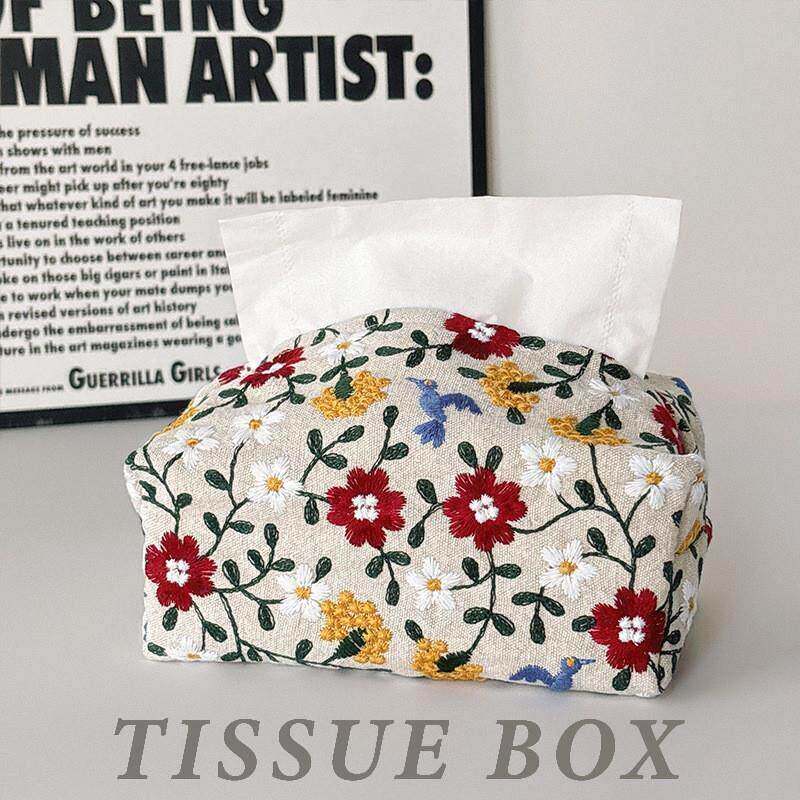 ins刺绣纸巾套家用卧室客厅高级感布艺纸巾盒棉麻纸巾袋桌面抽纸