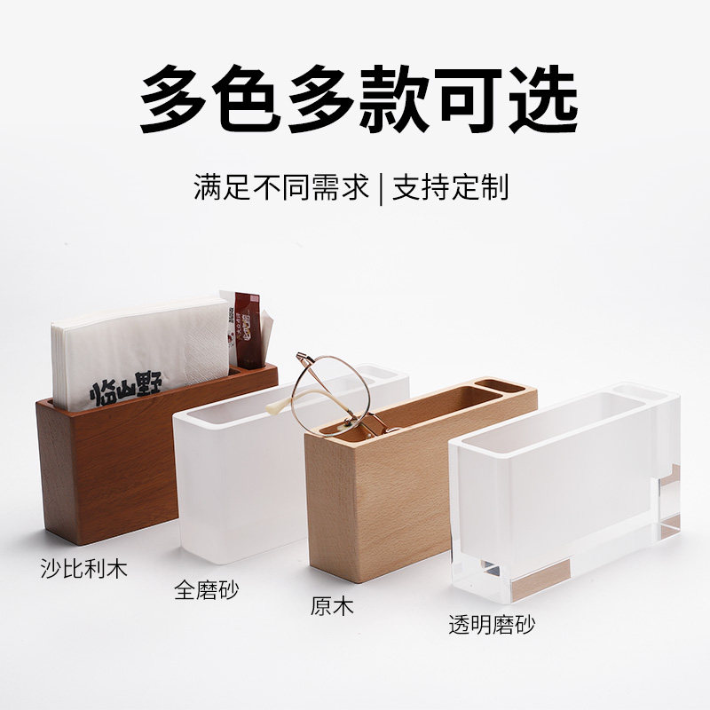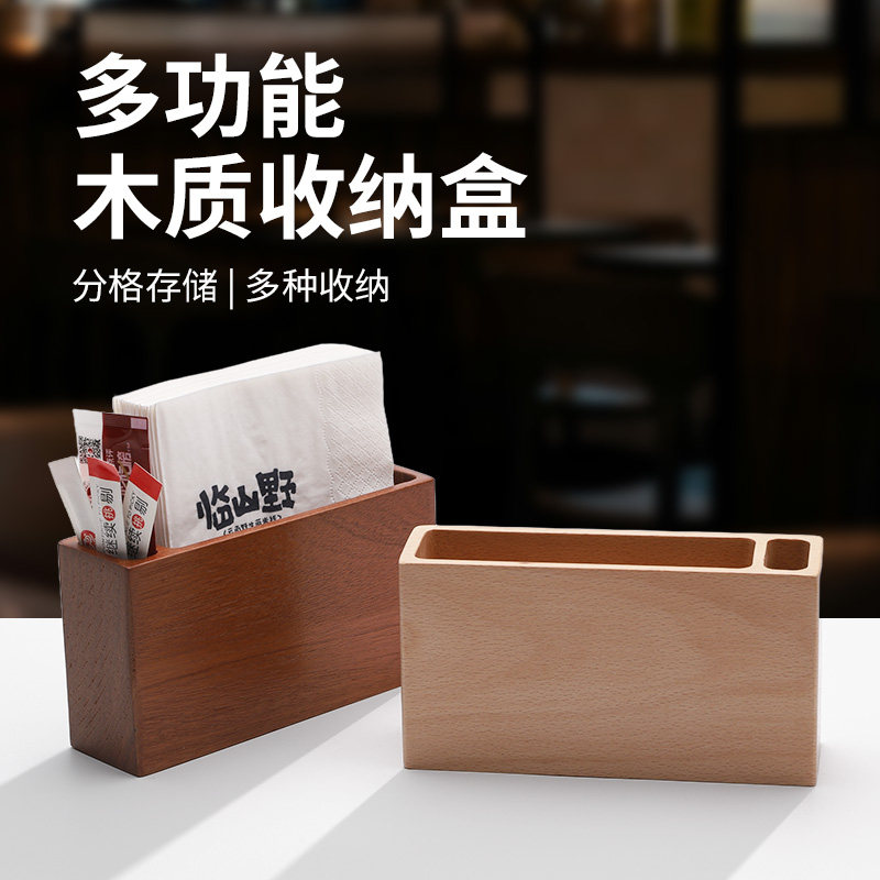 木质多功能收纳盒实木笔筒餐厅商用牙签纸巾盒桌面杂物整理盒定制