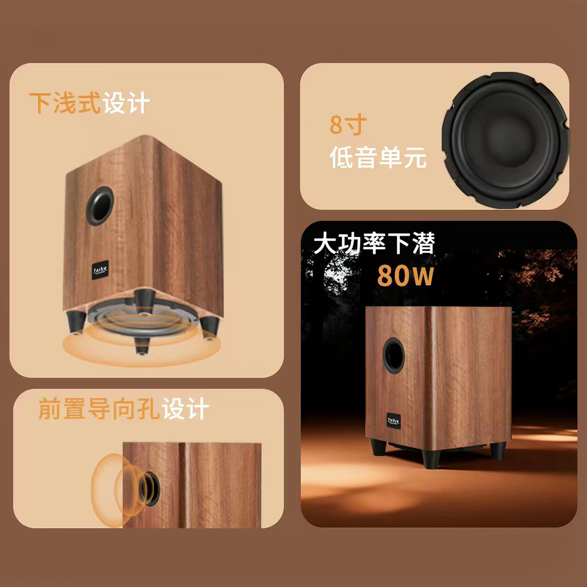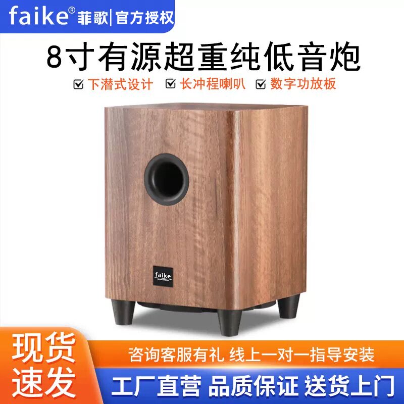 菲歌 家用有源超重低音炮8寸纯低音炮家庭影院大功率书架箱通用