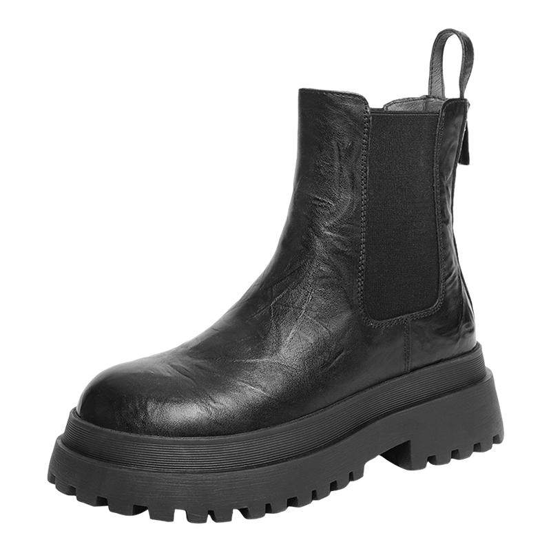 百丽女鞋子厚底增高切尔西靴冬季新款黑色休闲短靴子E7R1DDD5