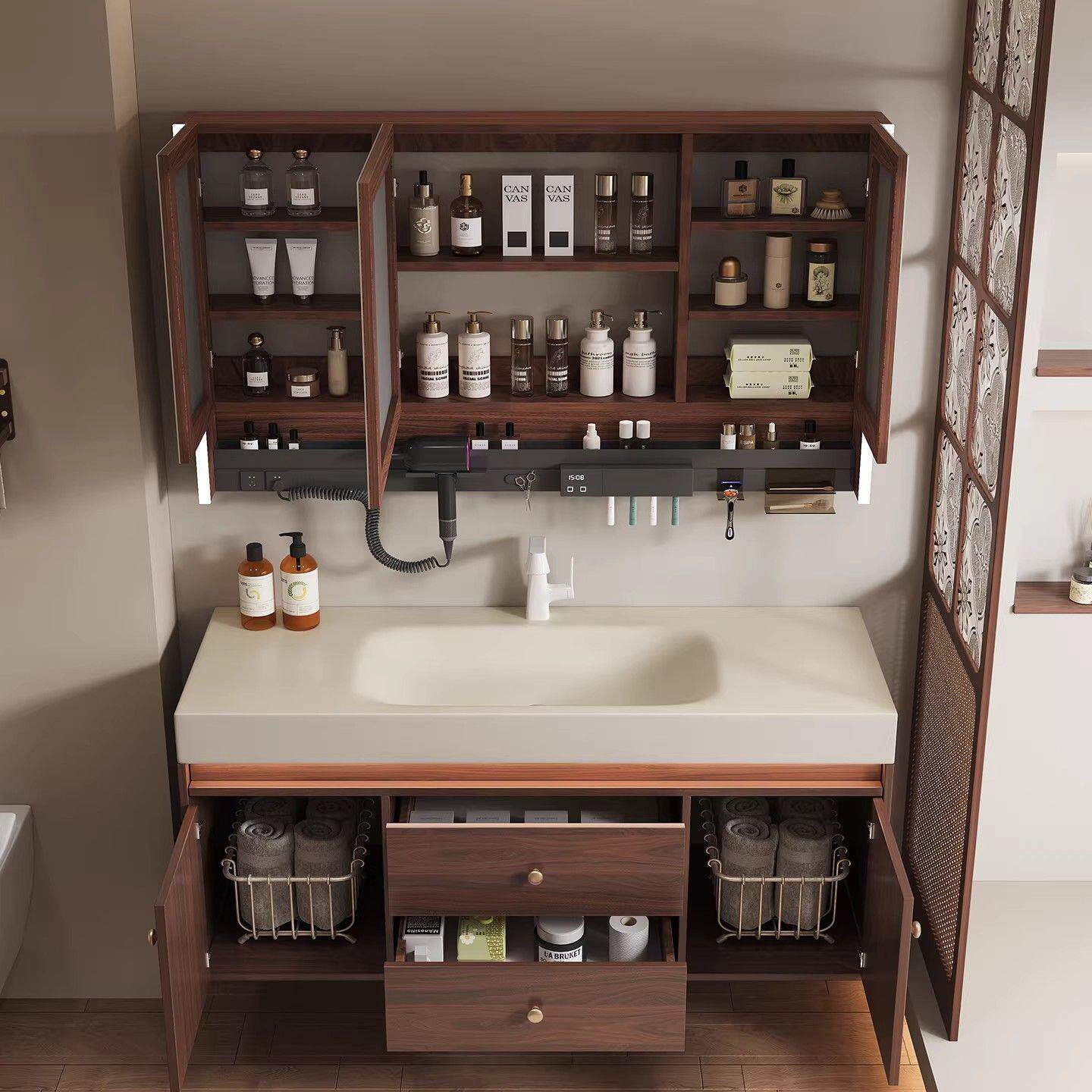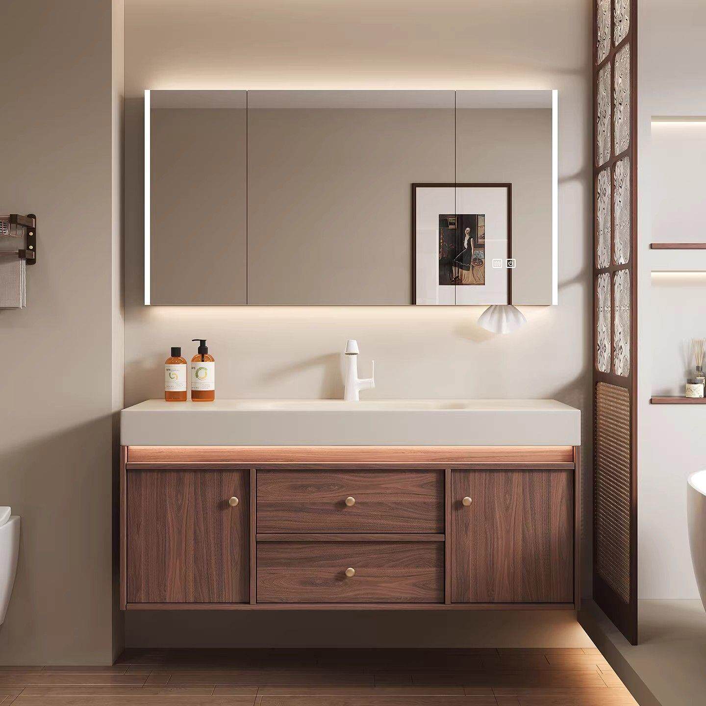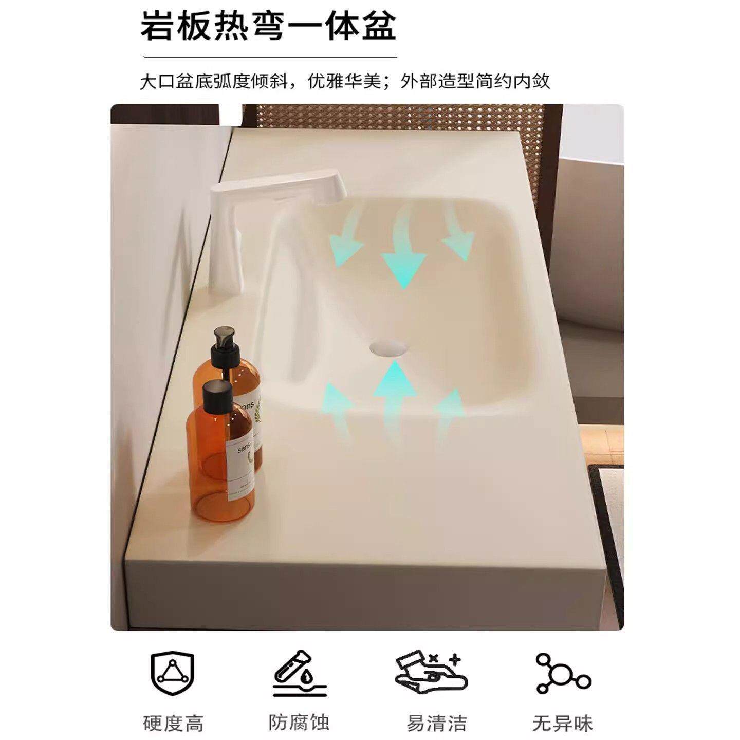 莫顿中古风岩板热弯一体盆浴室柜镜柜组合洗脸盆卫生间洗手洗漱台