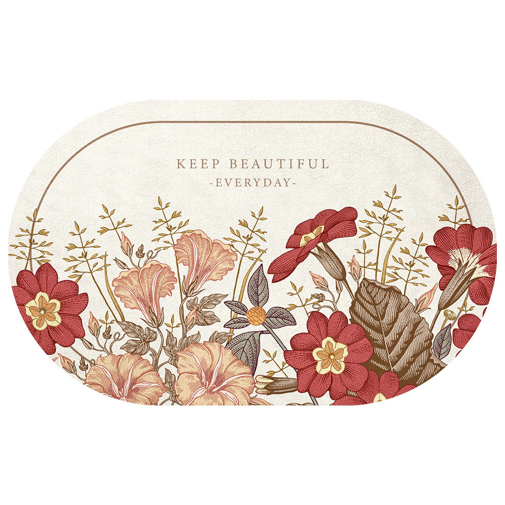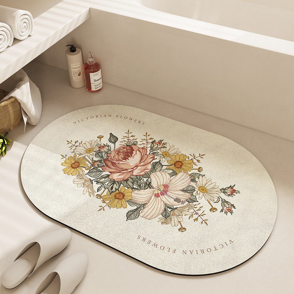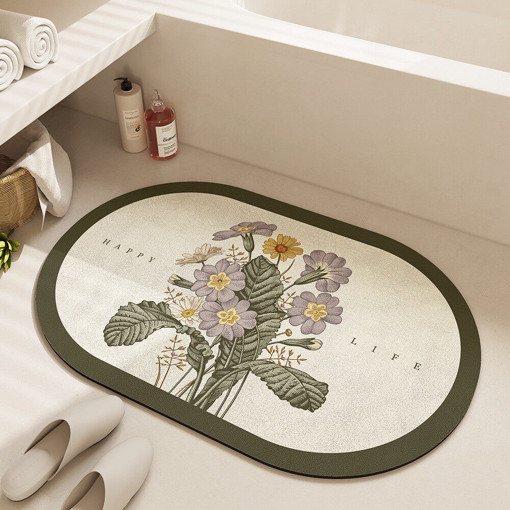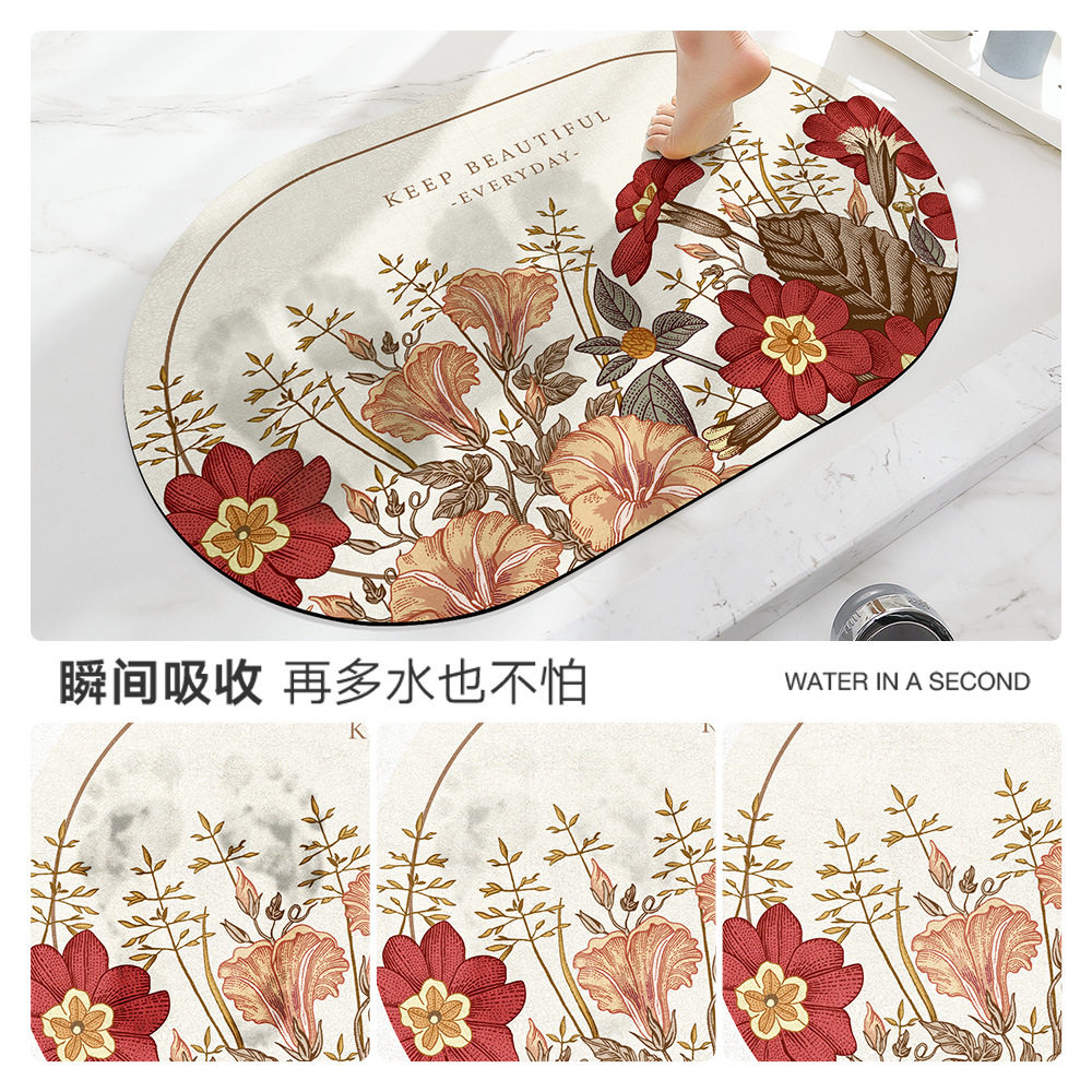 美式手绘花浴室门垫强吸水速干地垫轻奢家用卫生间进门防滑脚垫子