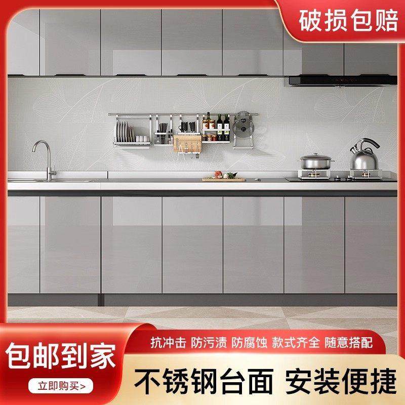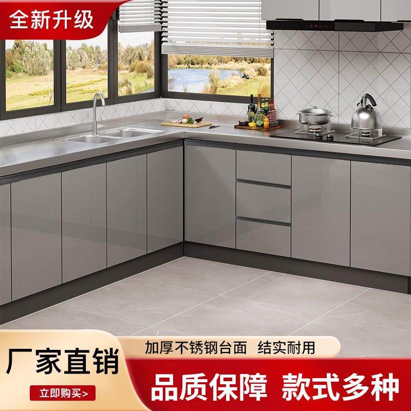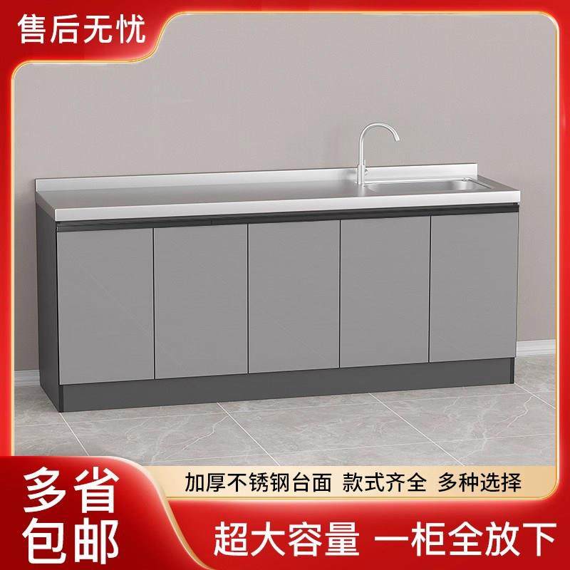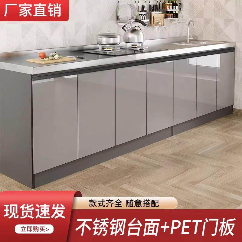 不锈钢台面整体厨柜灶台一体厨房储物柜简易租房家用水槽柜PET门