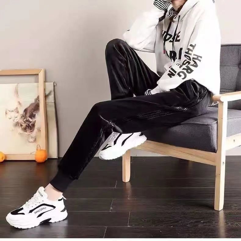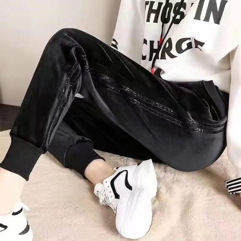 2025新款女士加绒裤子束脚秋冬季加厚哈伦休闲裤宽松显瘦运动卫裤
