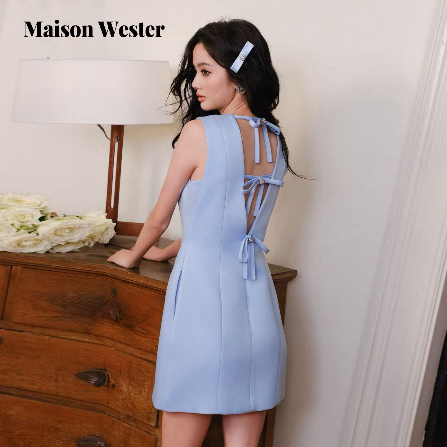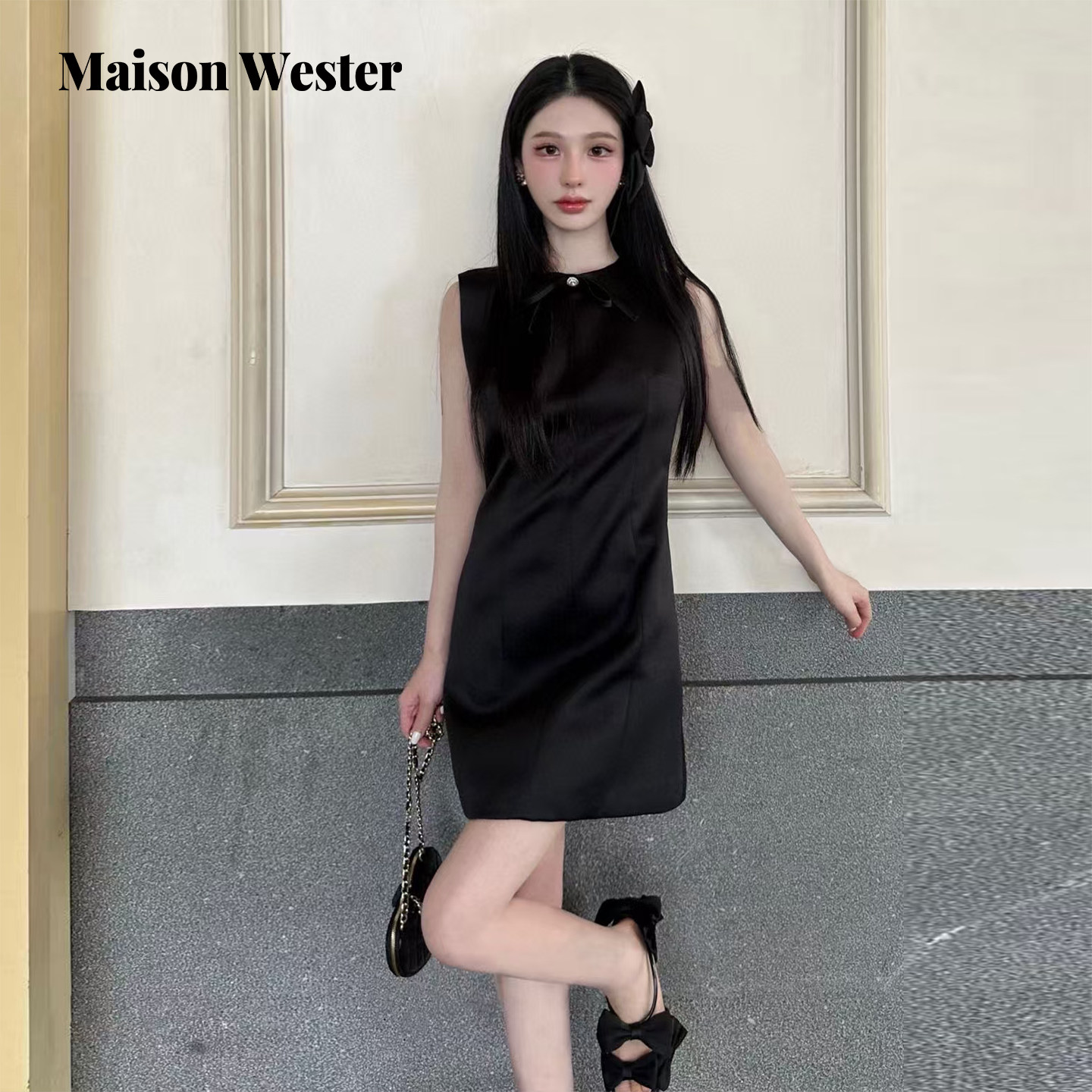 Maison Wester2025春季新款度假蝴蝶结直筒H型连衣裙可露丽穿搭