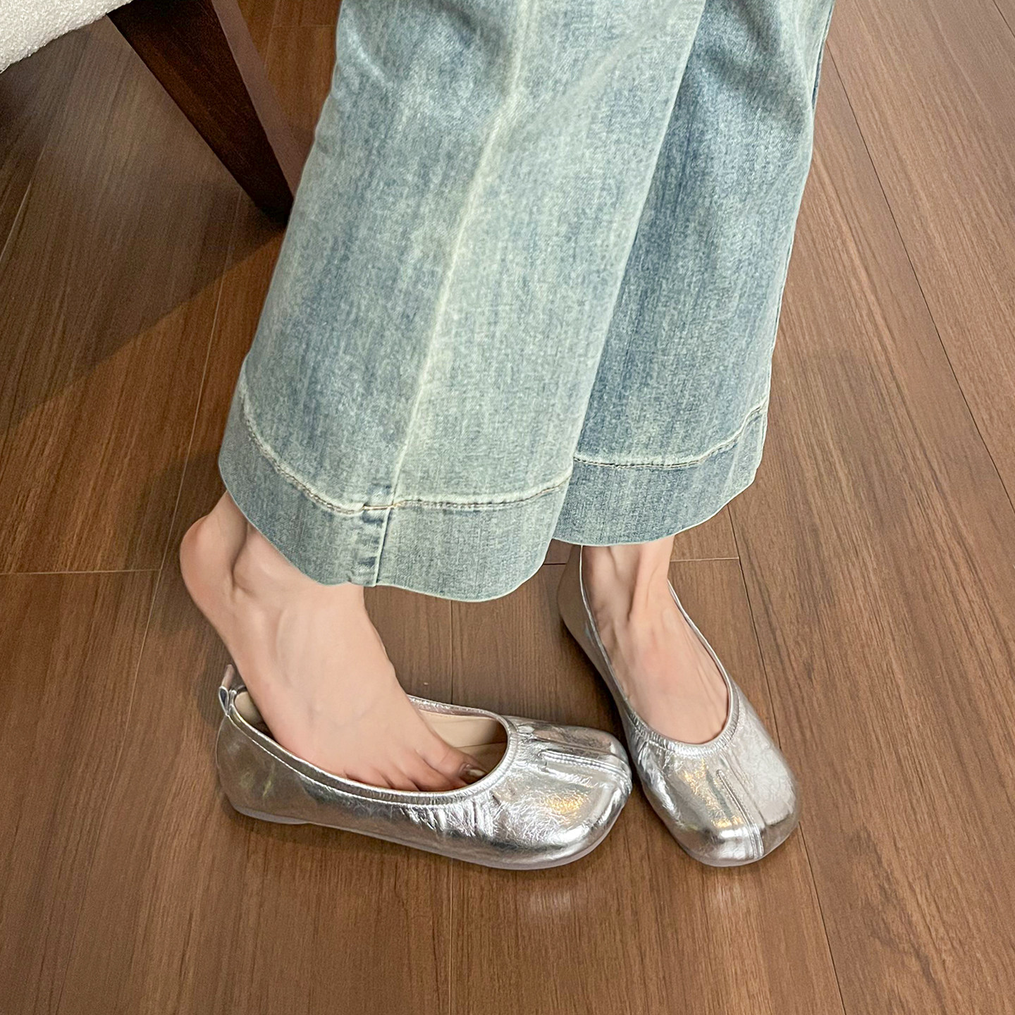 羊皮版~假分趾猪蹄鞋女平底浅口单鞋一脚蹬红色芭蕾舞鞋大码女鞋