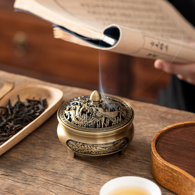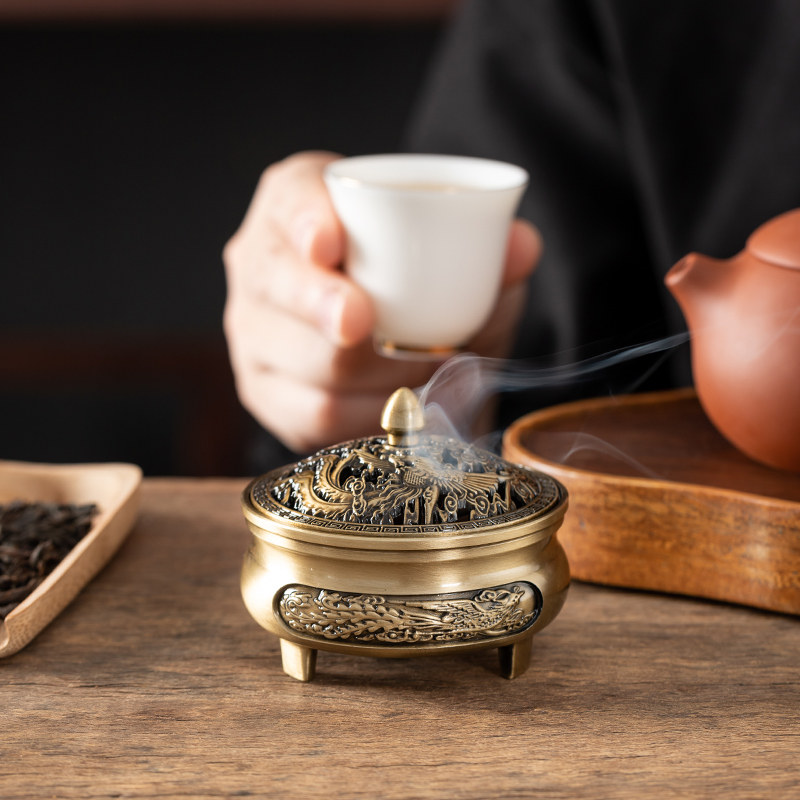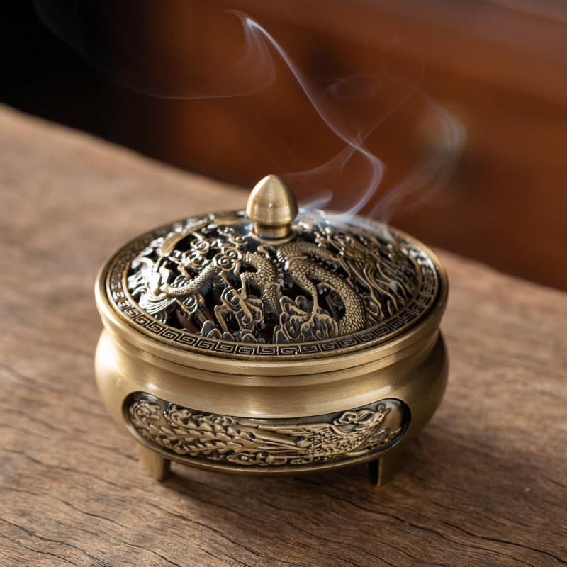 龙凤盘香炉家用室内办公室仿古香薰炉线香沉香檀香炉熏供佛香摆件