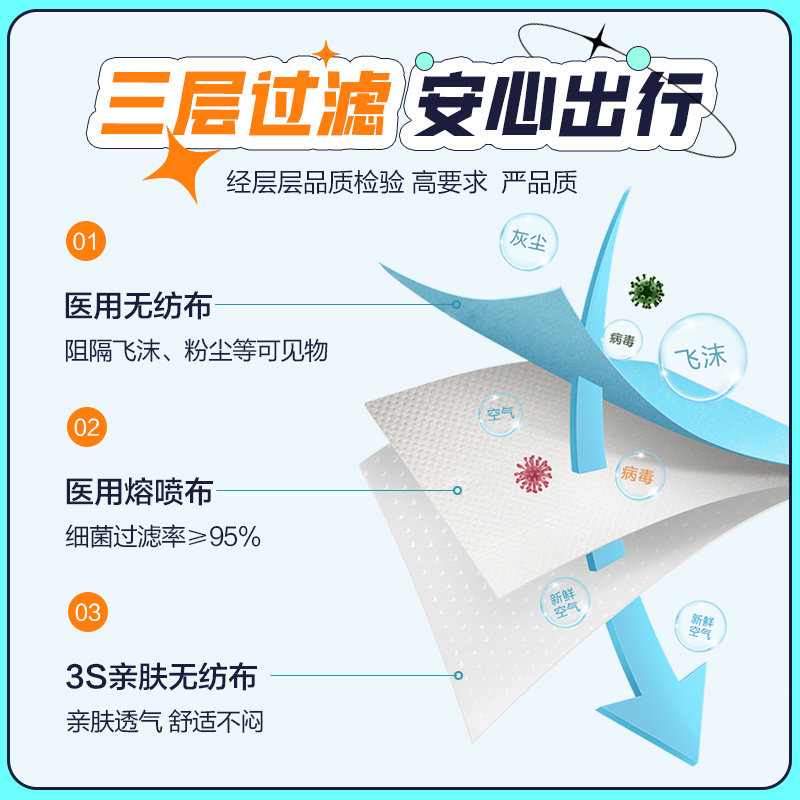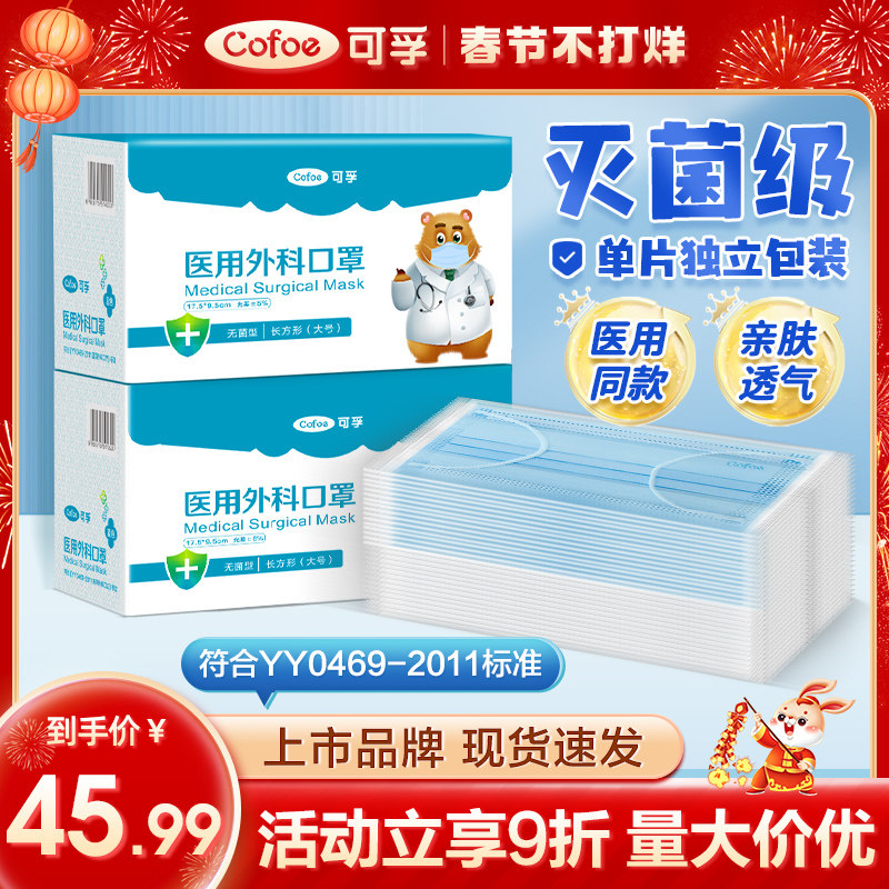可孚医用外科口罩一次性医疗三层正规正品官方旗舰店白色独立成人