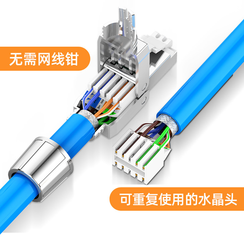 免压水晶头超六6七类千兆屏蔽免工具接网线五5类免打网络对接头