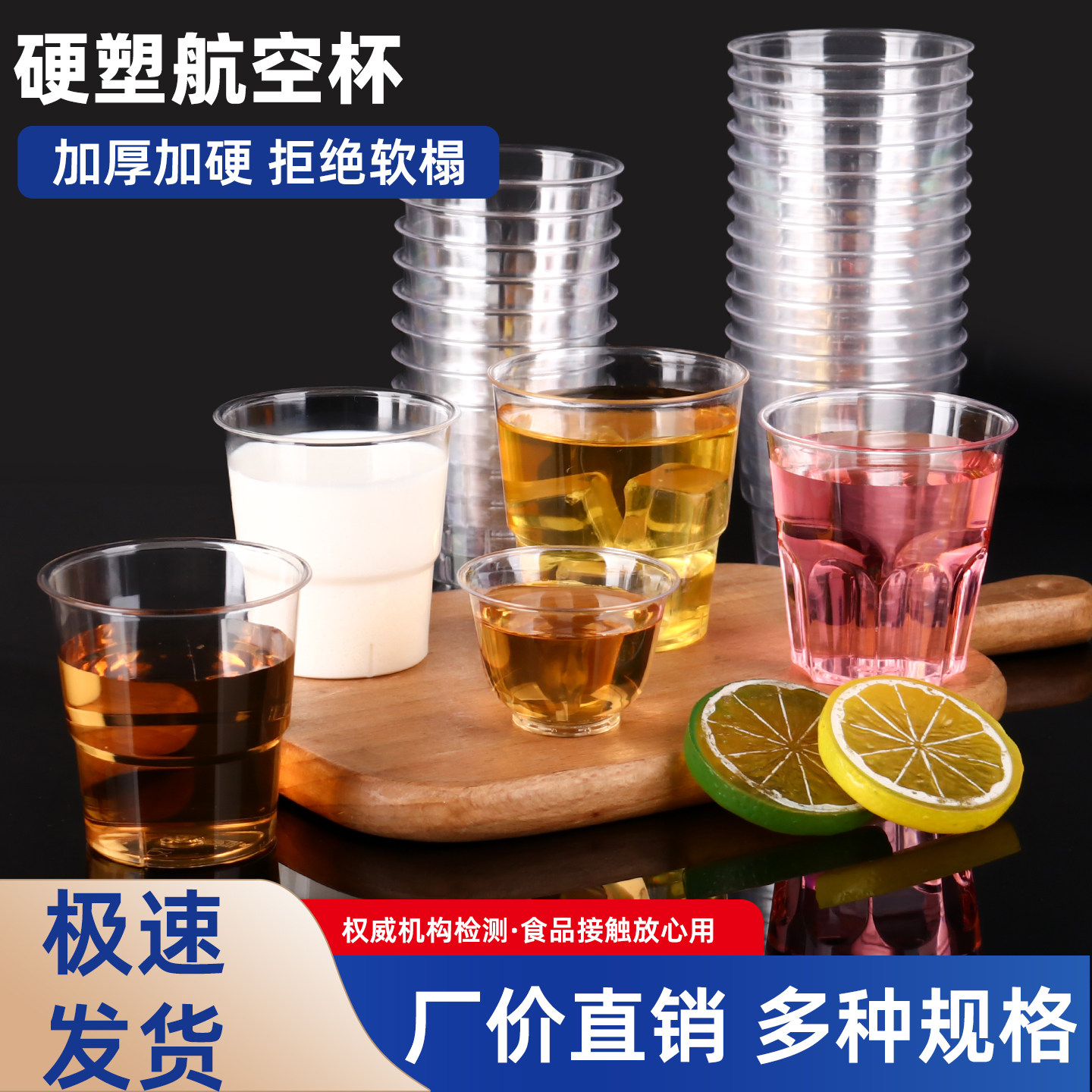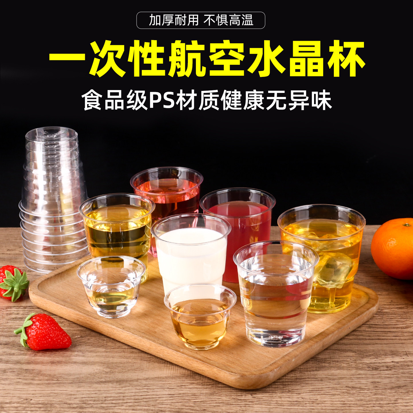 一次性杯子水杯航空杯茶杯加厚硬质塑料杯家用透明太空杯批发商用
