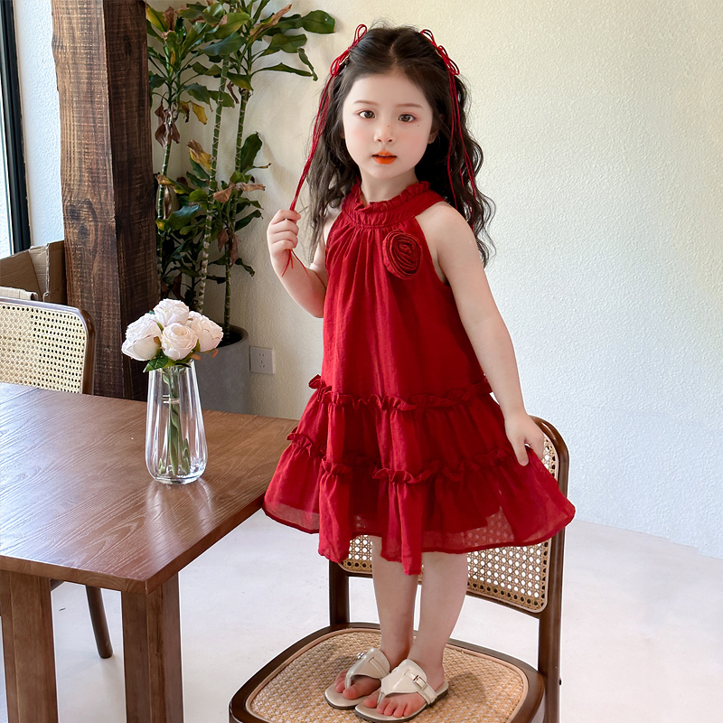 女童法式连衣裙2025新款儿童夏季洋气红色公主裙女宝宝超好看裙子