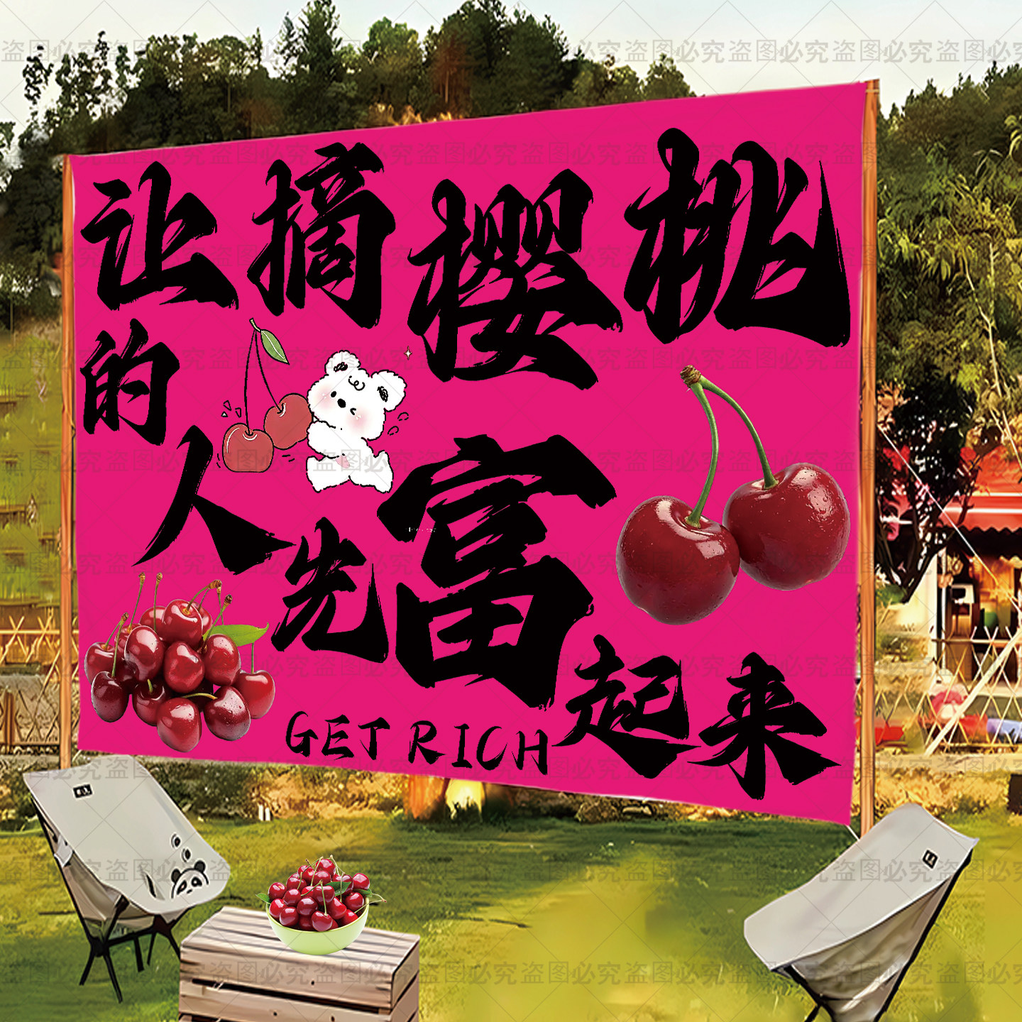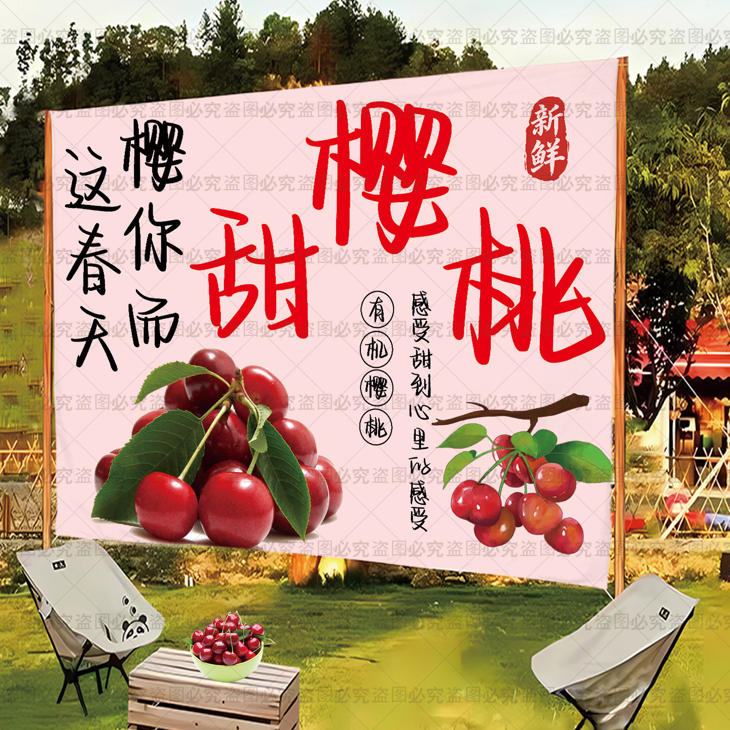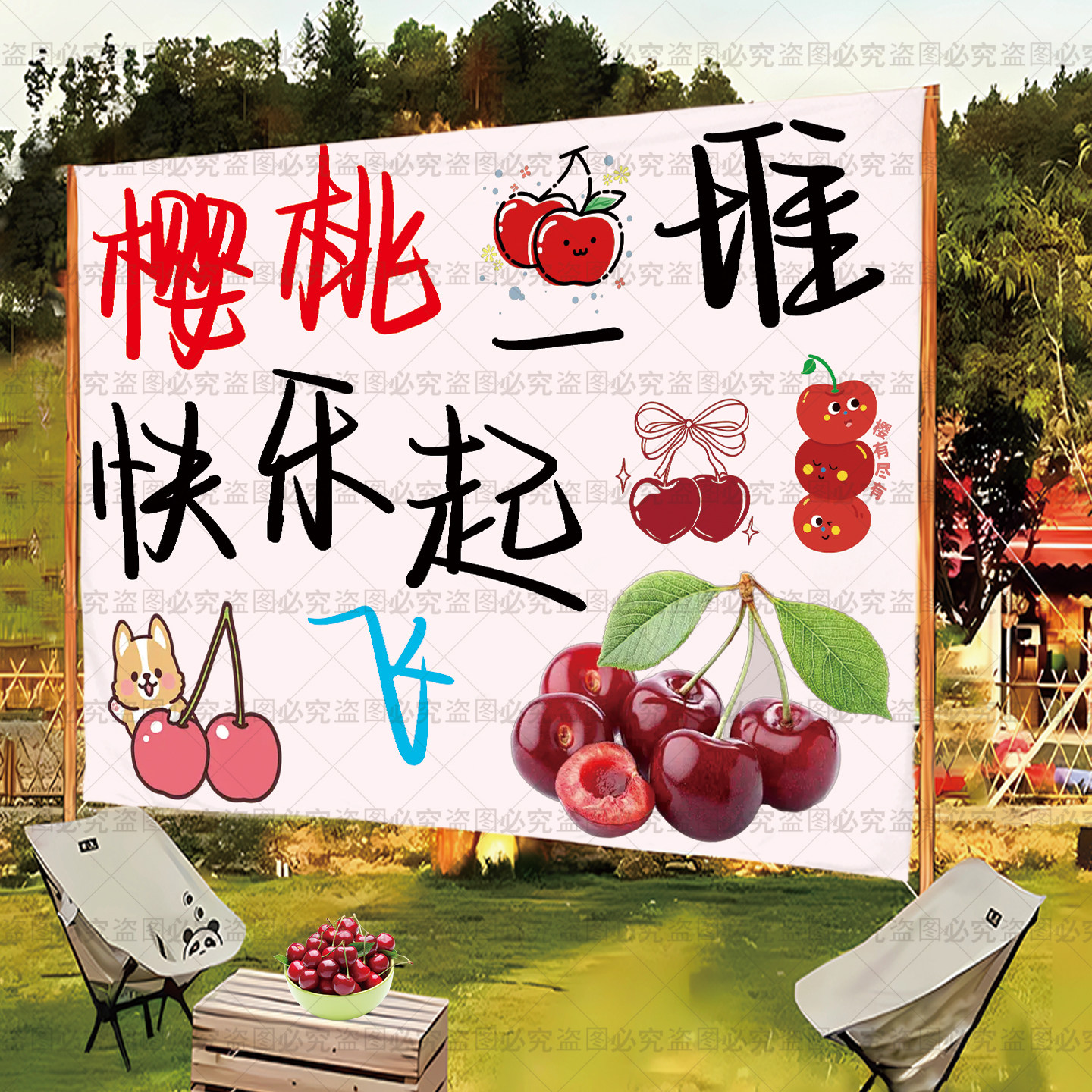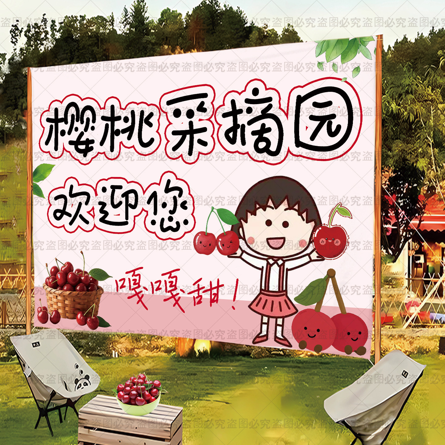 定制樱桃采摘园横幅挂布条幅氛围布水果采摘园横幅各种采摘园挂毯