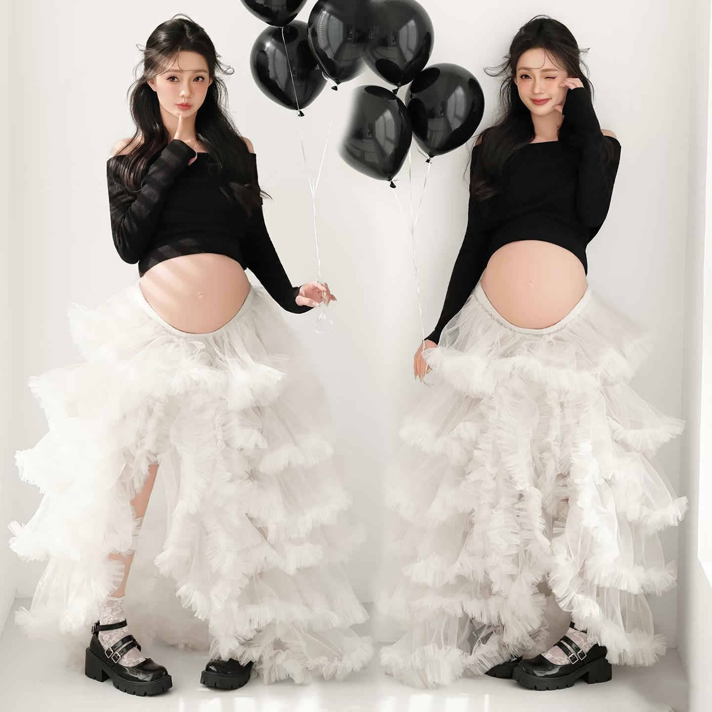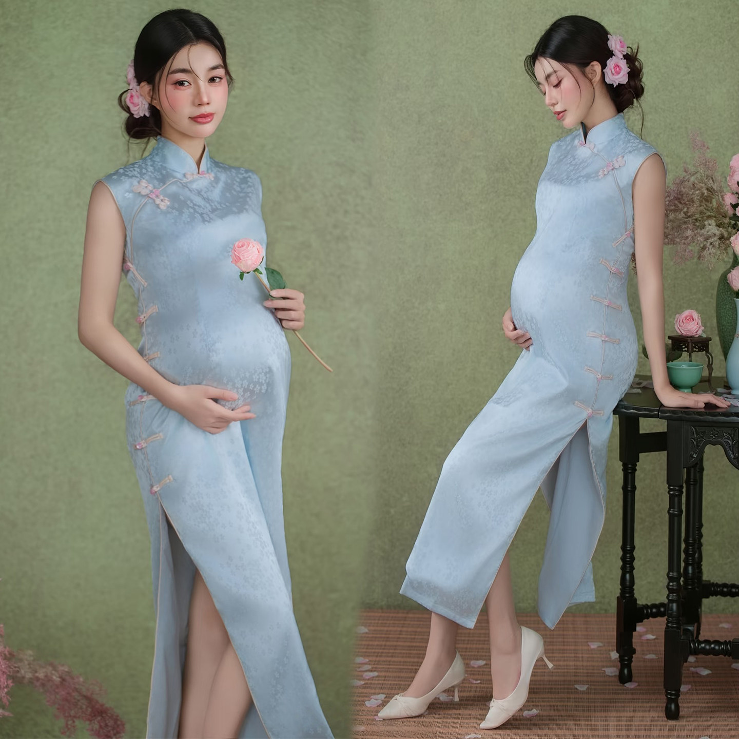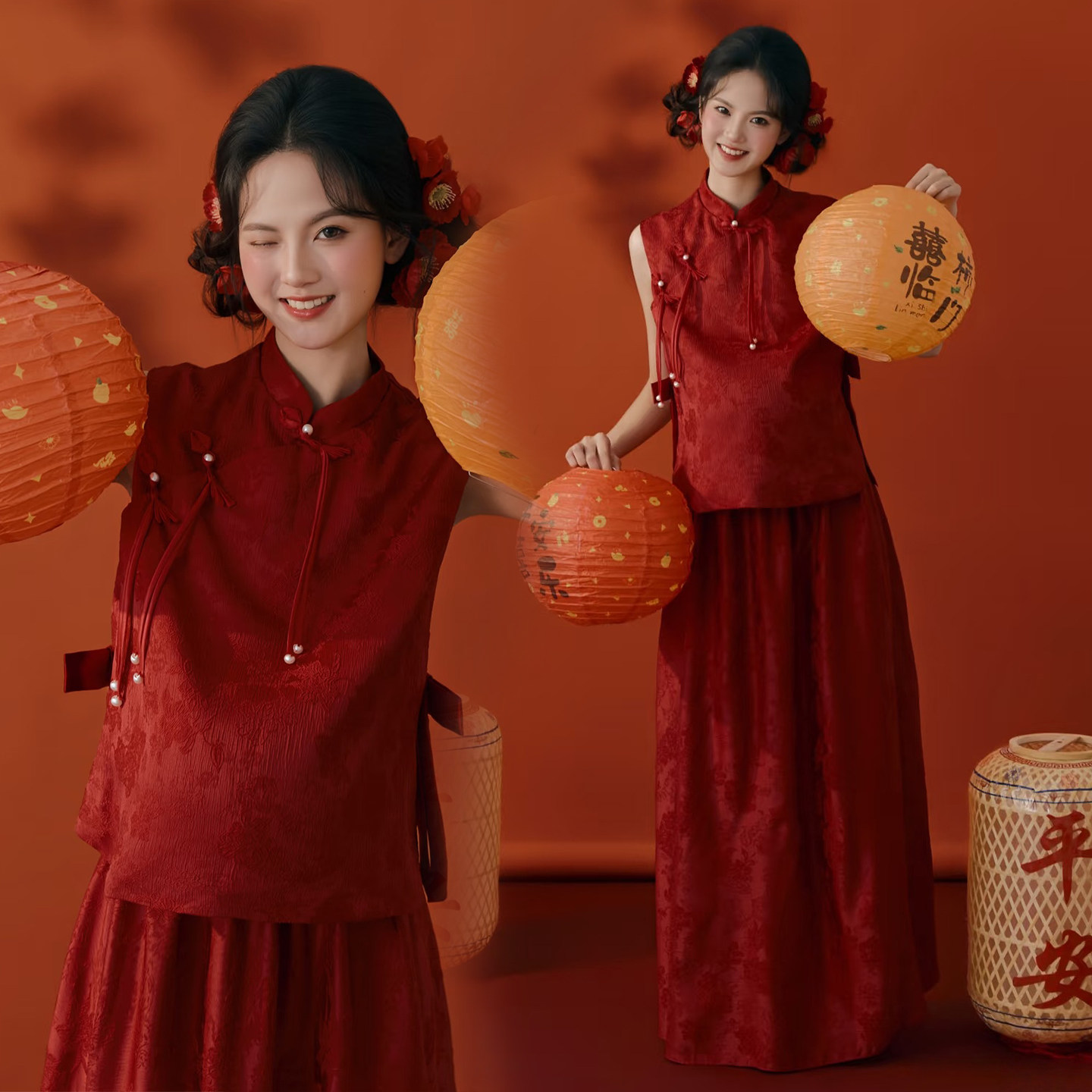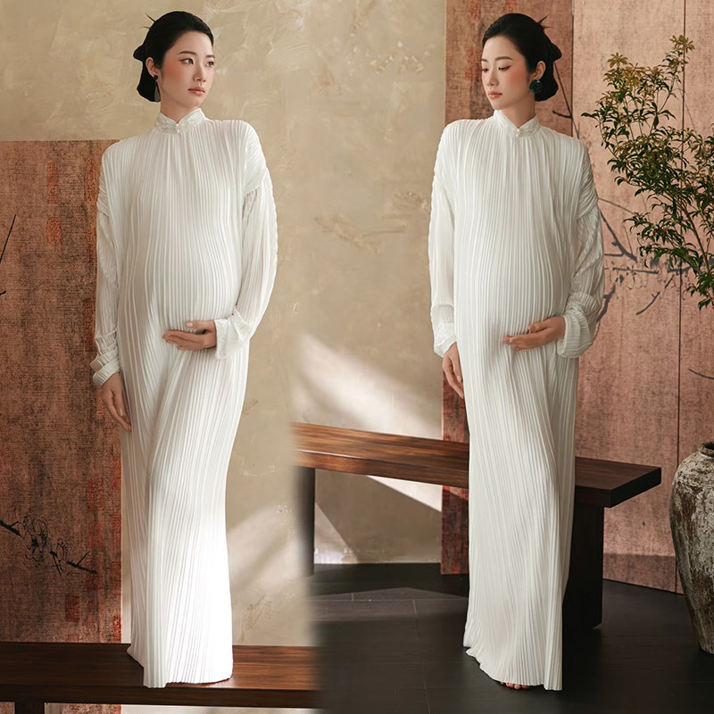 孕妇拍照服装影楼新款新年锦鲤主题红色高级连衣裙肖像艺术摄影服